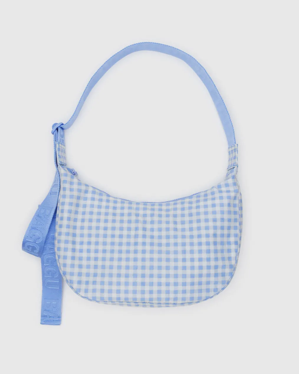 Lots of neat things are crescent-shaped: bananas, cashews, croissants, and now this Baggu bag. It features two interior zip pockets, an adjustable strap, and machine-washable fabric.