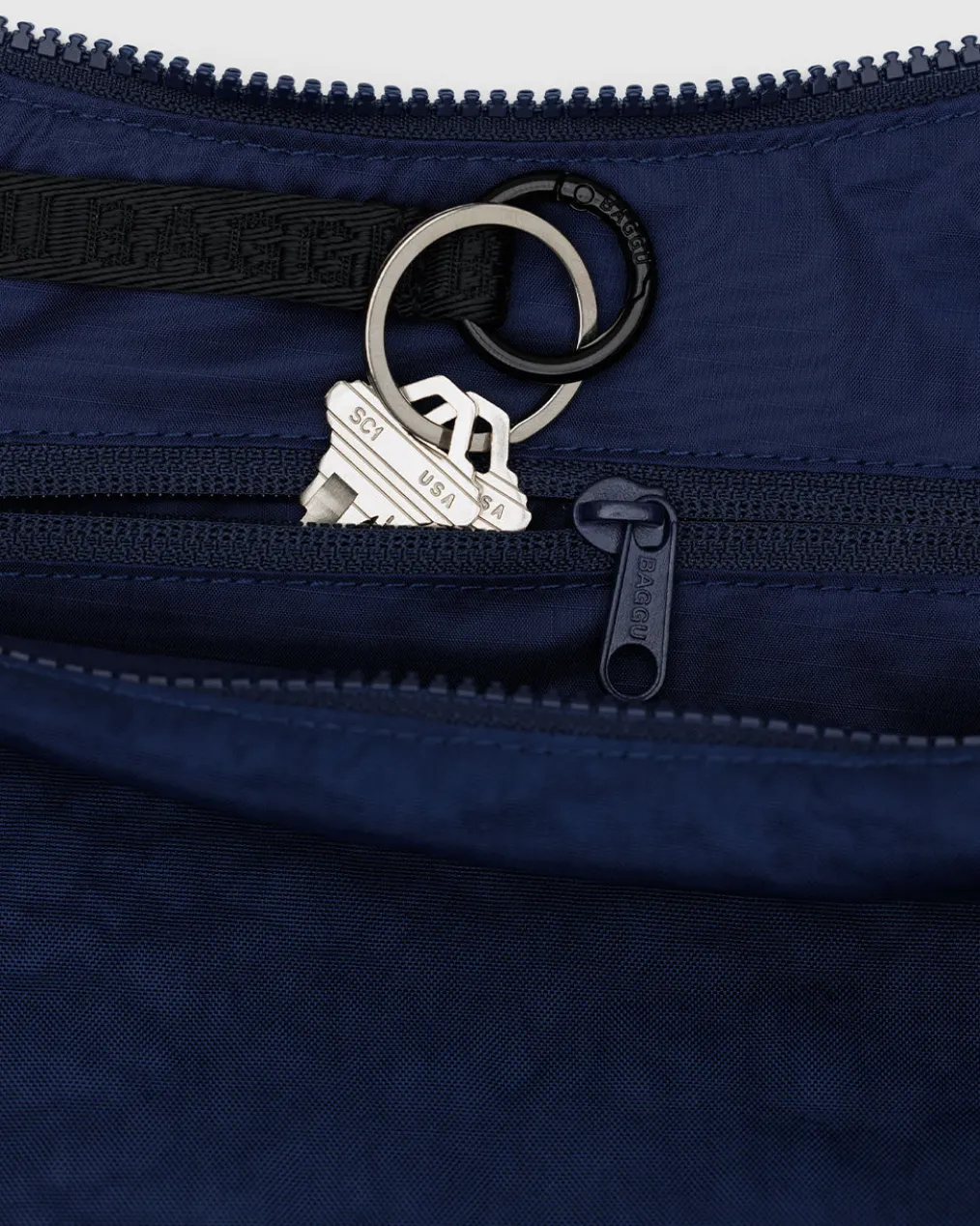 Lots of neat things are crescent-shaped: bananas, cashews, croissants, and now this Baggu bag. It features two interior zip pockets, an adjustable strap, and machine-washable fabric.