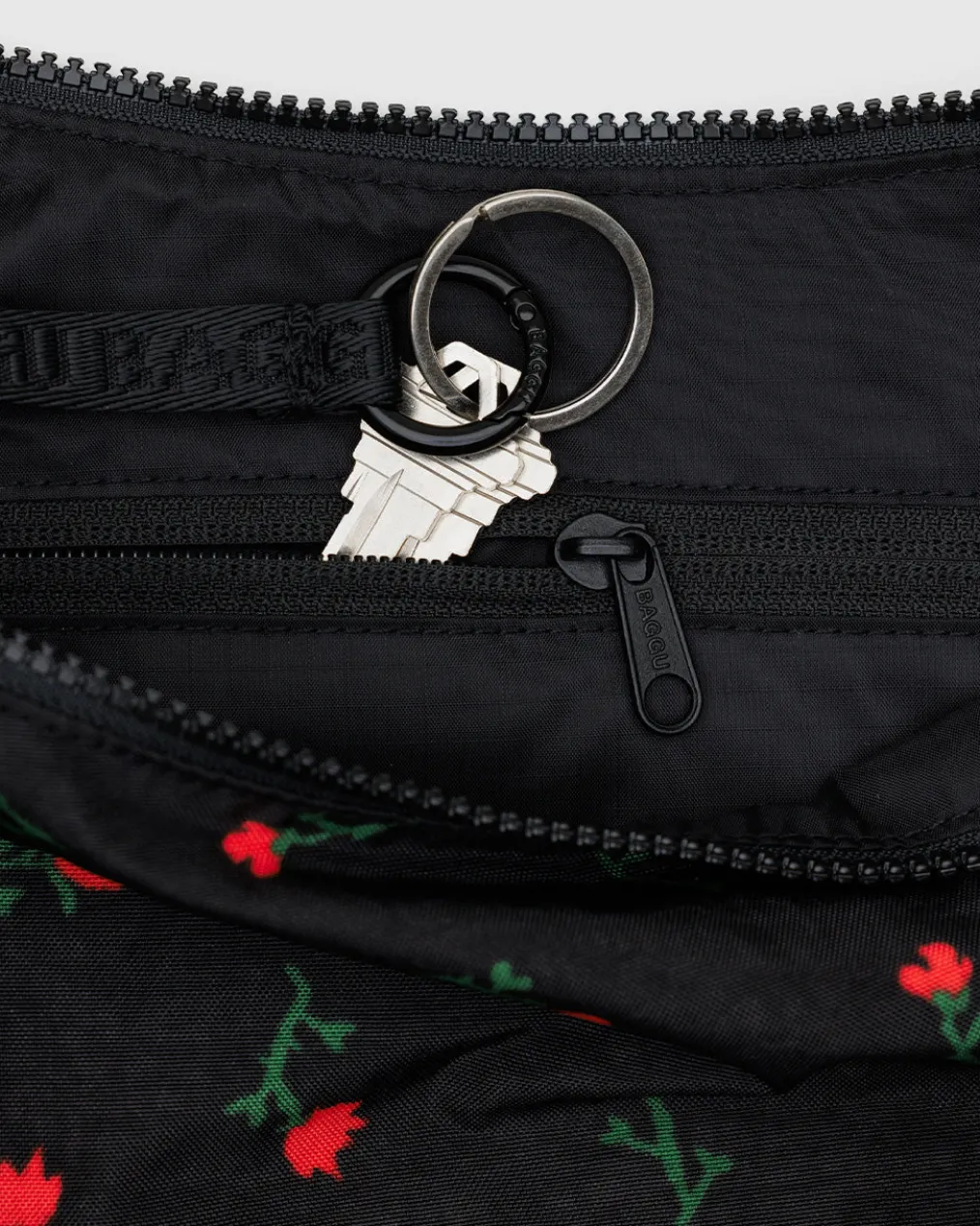 Lots of neat things are crescent-shaped: bananas, cashews, croissants, and now this Baggu bag. It features two interior zip pockets, an adjustable strap, and machine-washable fabric.