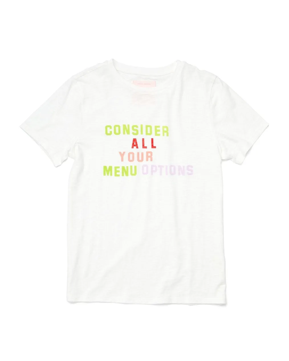 For your consideration… All your menu options. In restaurants and in life in general, this tee we made with our friend Katie Kimmel is here to remind you to think through all of your options. Because we believe that it’s important to try new things, no matter how good your usual order is.