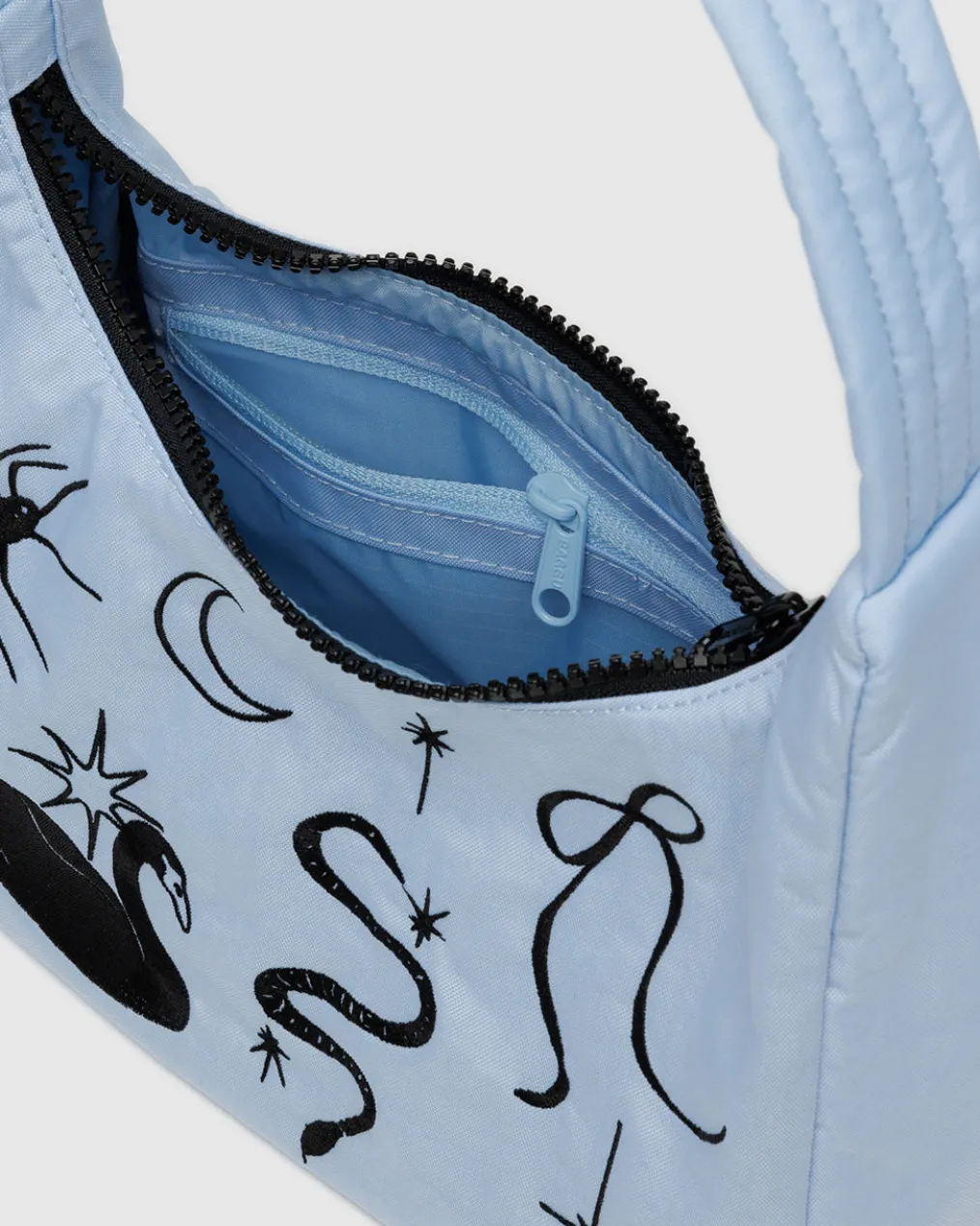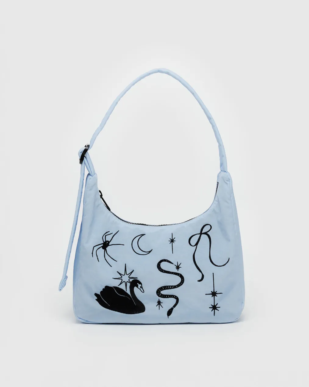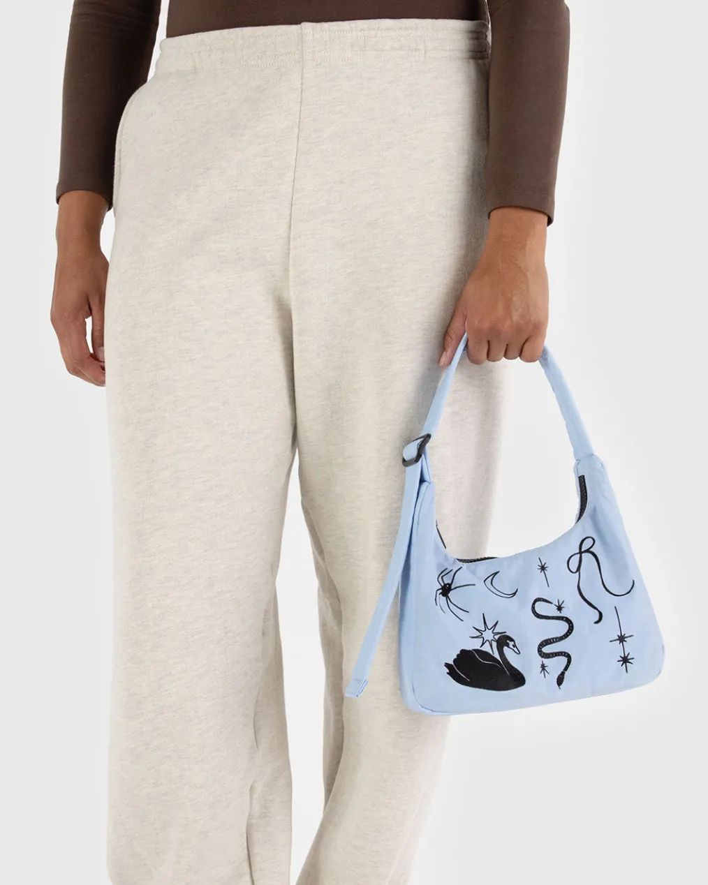 A mini version of Baggu’s new nylon shoulder bag. Slightly slouchy, slightly structured. Complete with an interior pocket so everything has a place.