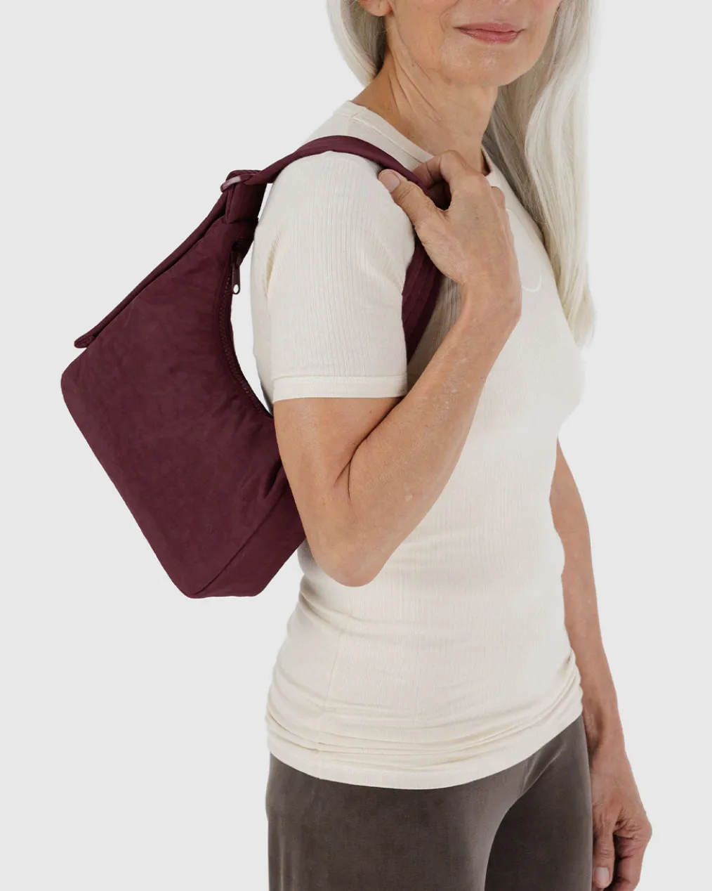 A mini version of Baggu’s new nylon shoulder bag. Slightly slouchy, slightly structured. Complete with an interior pocket so everything has a place.