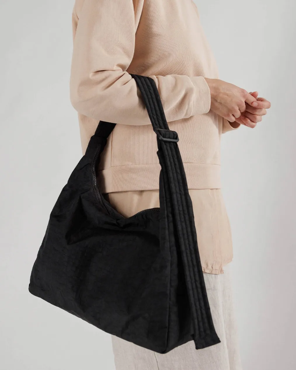 - Recycled heavyweight nylon, recycled ripstop nylon lining