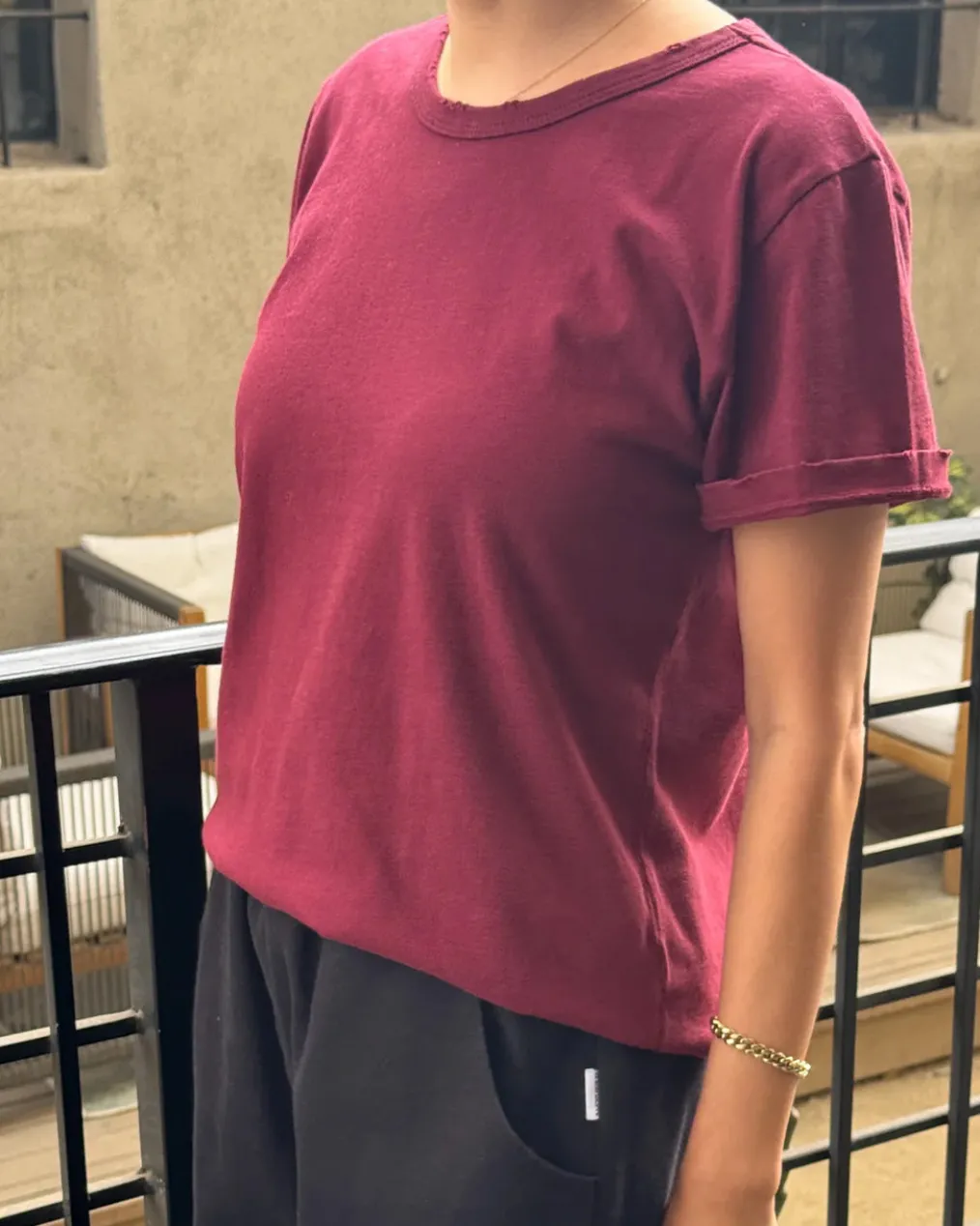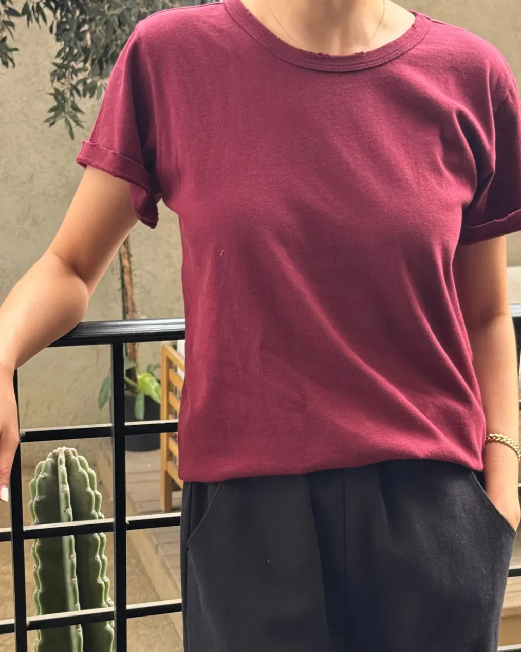 Organic Cotton Vintage Boy Tee is Le Bon Shoppe’s take on the cult classic tee, almost like the one you love to steal from your boyfriend’s closet, but even better. She has a classic crew neck that shows just the right amount of collarbone, is gently distressed for that gorgeous vintage look but without the smell, and has the most flattering relaxed boxy fit with a straight hem. Made from 100% organic cotton in Los Angeles, this tee has it all.