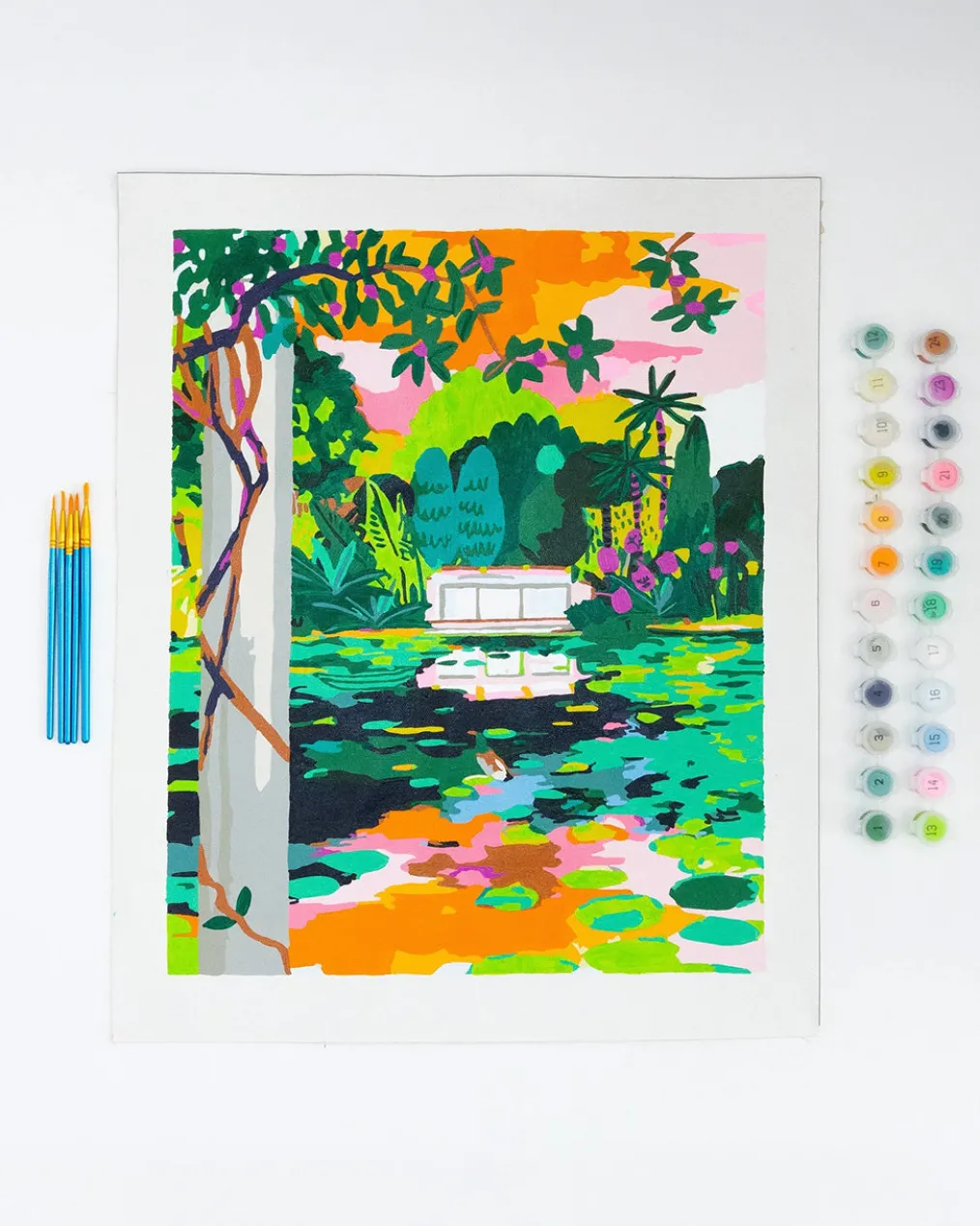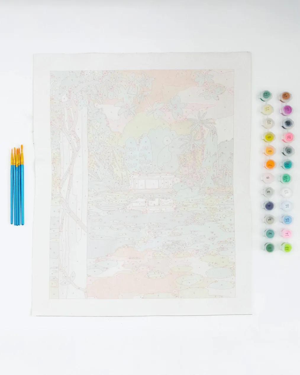 - Includes: 16 in. x 20 in. ready-to-paint premium printed canvas, a 5 brush set, and handy little pots of acrylic paint