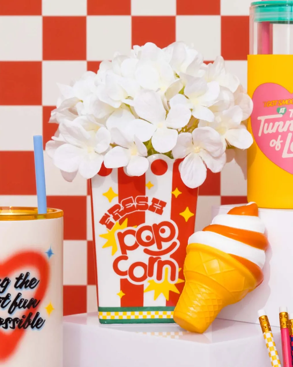Sometimes basic, minimal vases just don’t cut it. Luckily, this cutie popcorn vase is here to save the day. It’s ceramic and has a scalloped top.