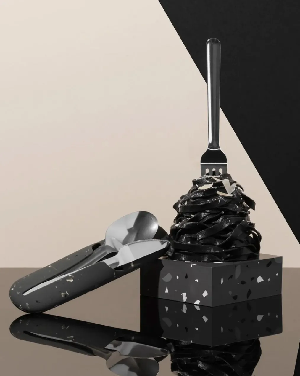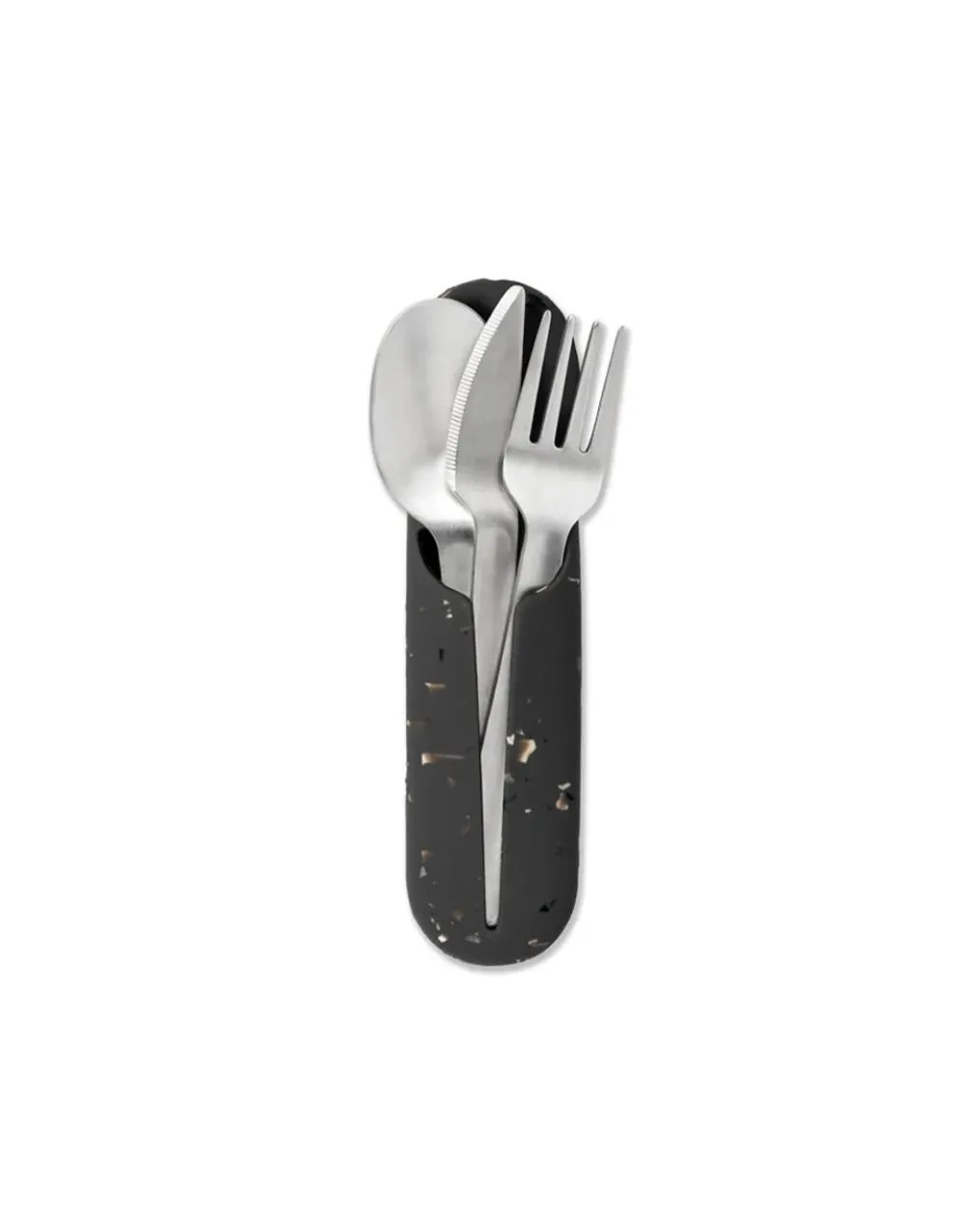 Put a fork in single-use waste & BYO this sleek set of stainless steel silverware, housed in a silicone case.
