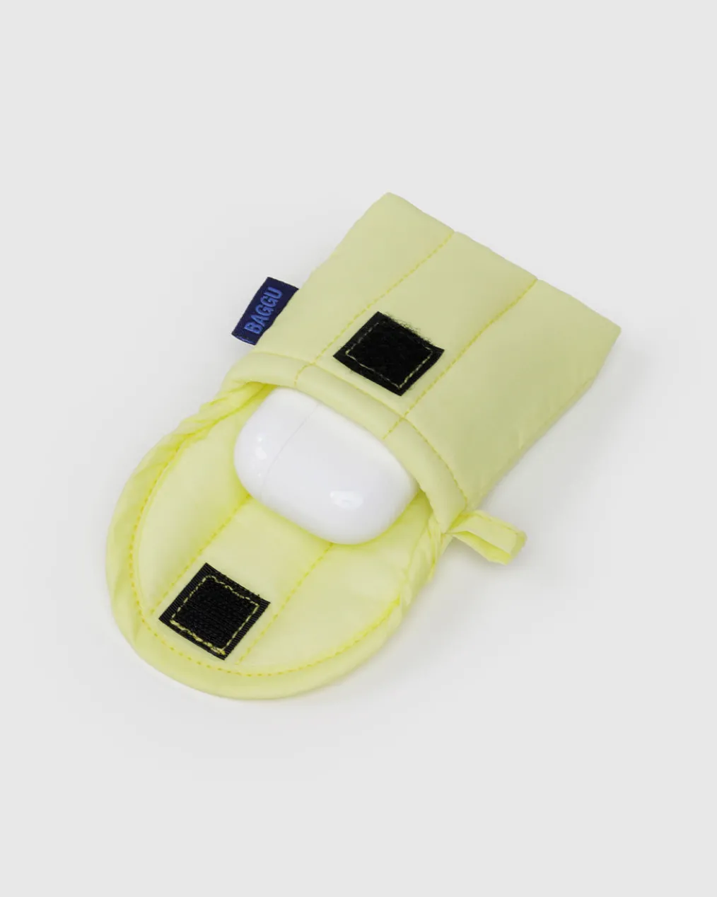 Ok, cute. Keep your earbuds safe with this puffy pouch. From Baggu, it’s lightly padded, has a Velcro closure, and includes a handy keychain loop