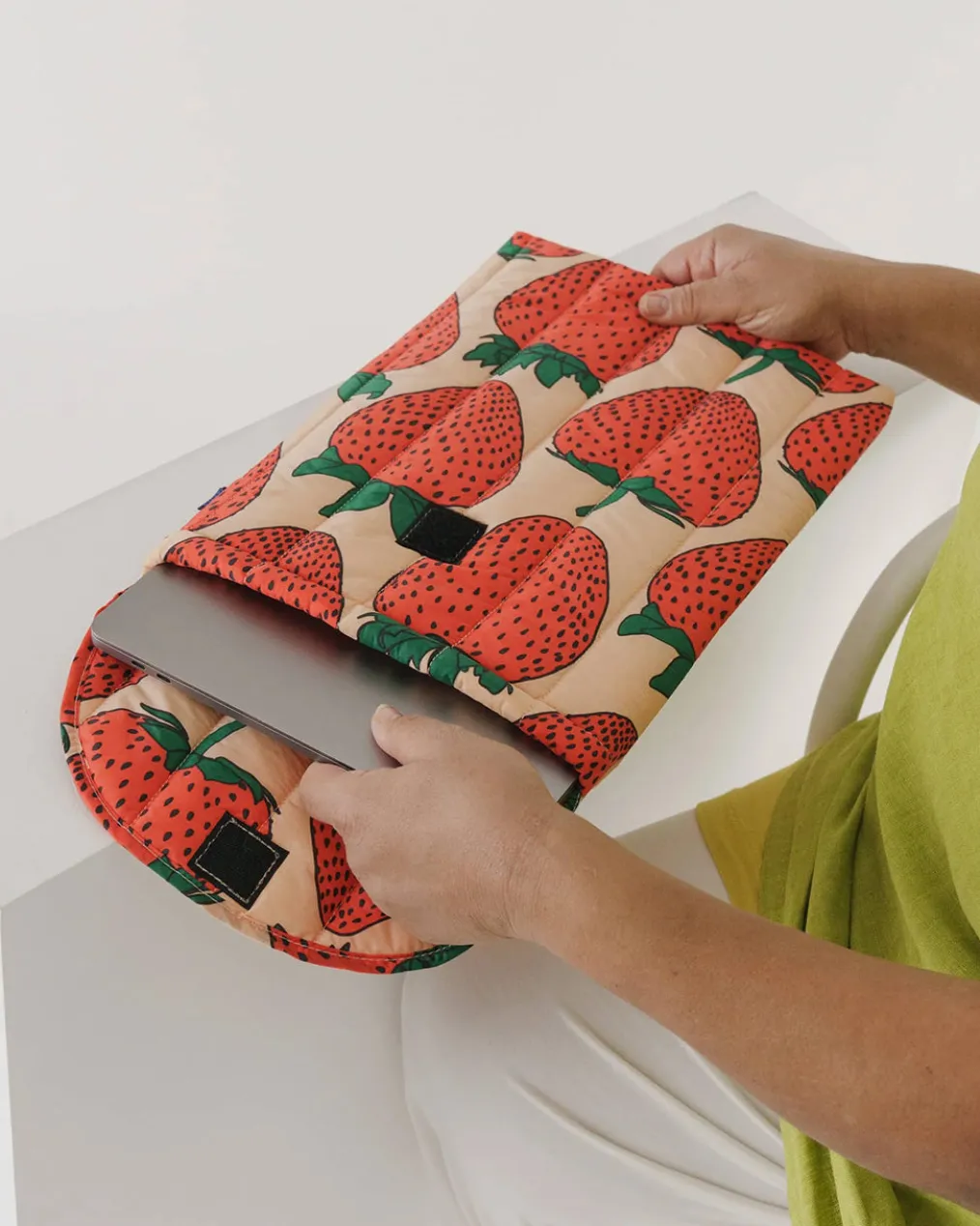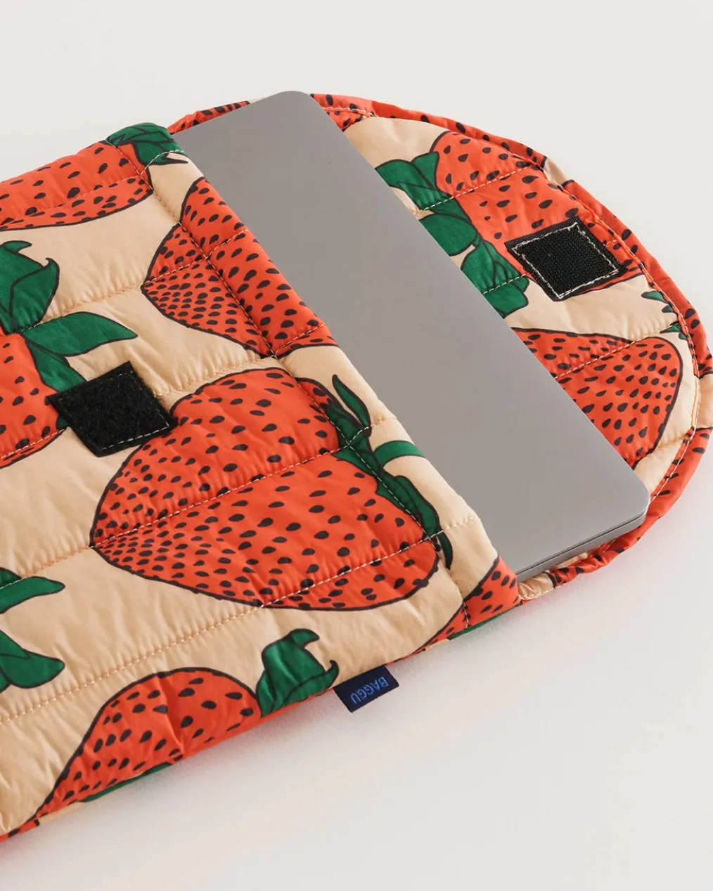 It’s about time your laptop had its very own Baggu bag. This sleeve is 16 in. long, lightly padded, and has a Velcro closure.