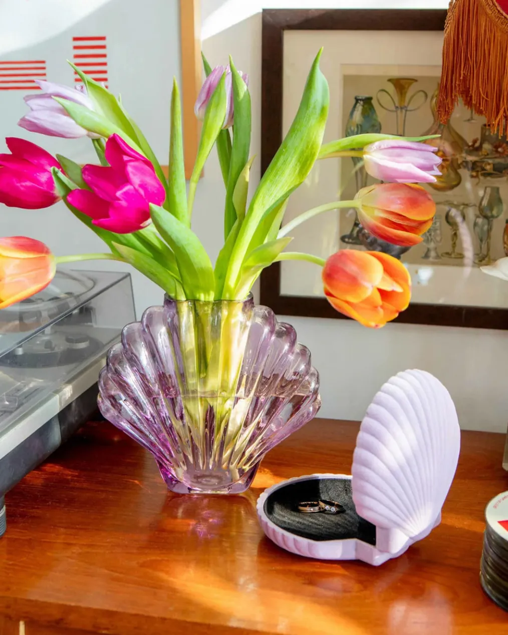 Glass vase shaped as a seashell that will give a cozy and vintage touch to your interior.