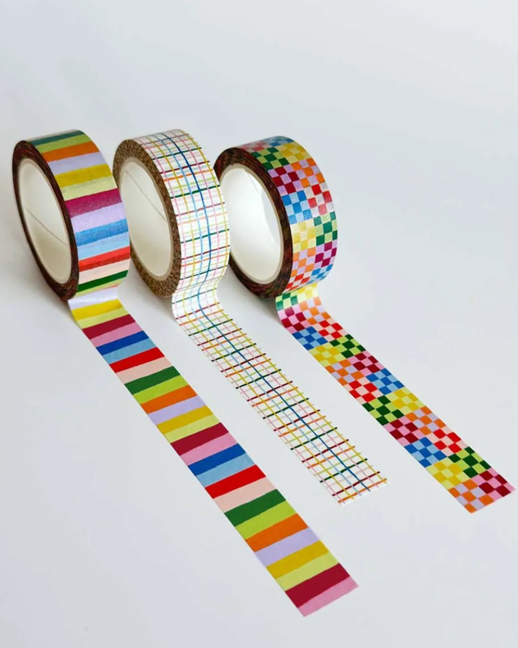 Add a decorative accent to your scrapbooks, correspondence, crafts, planners, and even gift wrapping with Idlewild’s set of illustrated paper tapes in three coordinating (& colorful!) patterns.