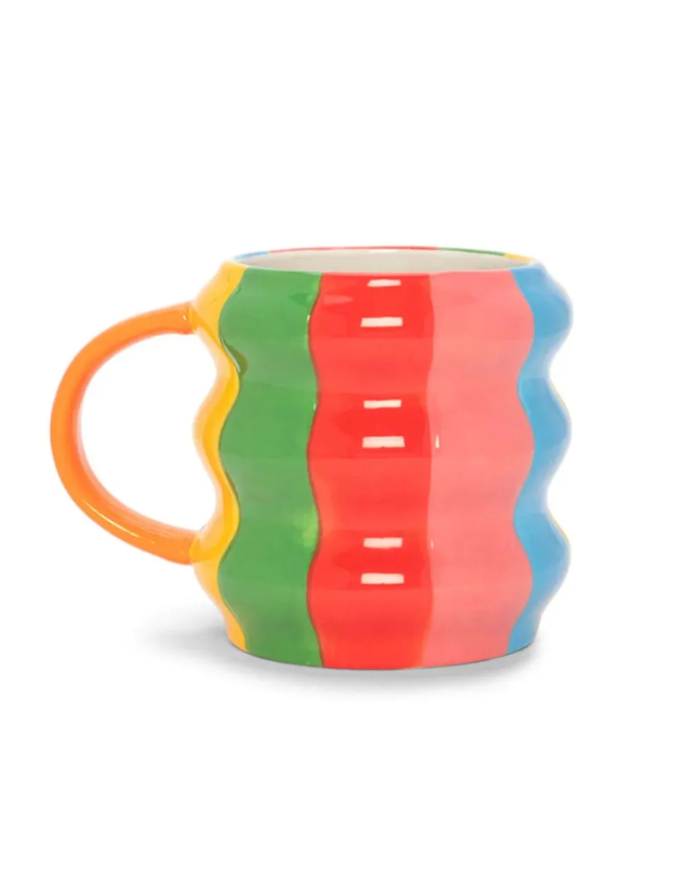 A fun mug for a fun person (i.e. you). This is made of hand-painted ceramic, and it has a colorful wavy design