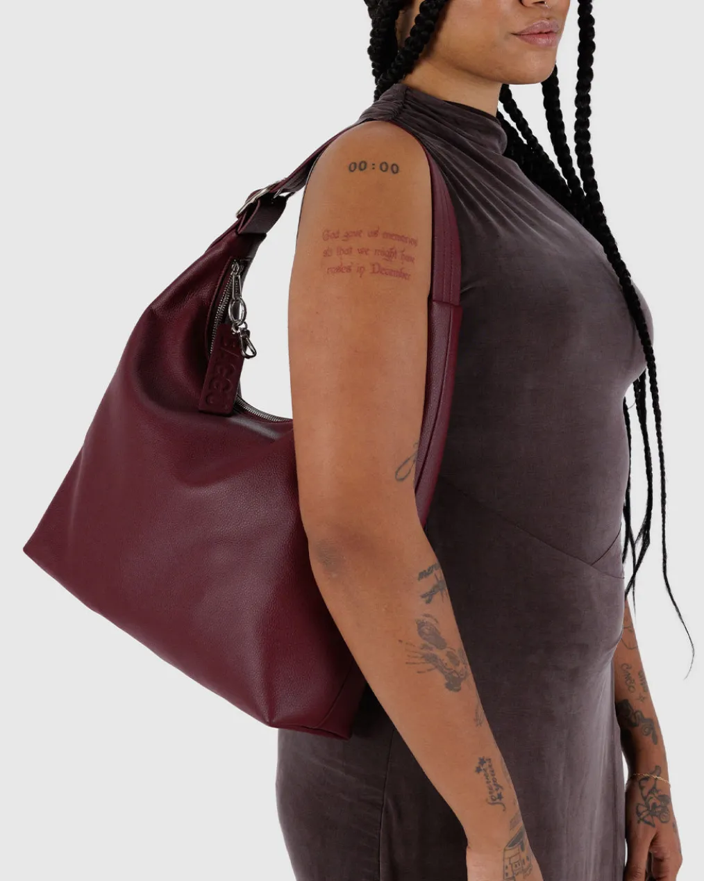 The most premium expression of Baggu’s popular crescent shape. Crafted with simple, elegant lines and recycled leather that’s been fine-tuned for quality, style, and impact. The material upholds their durability and responsible sourcing standards alongside truly elevated details, like a signature grain, custom hardware, and recycled trims.