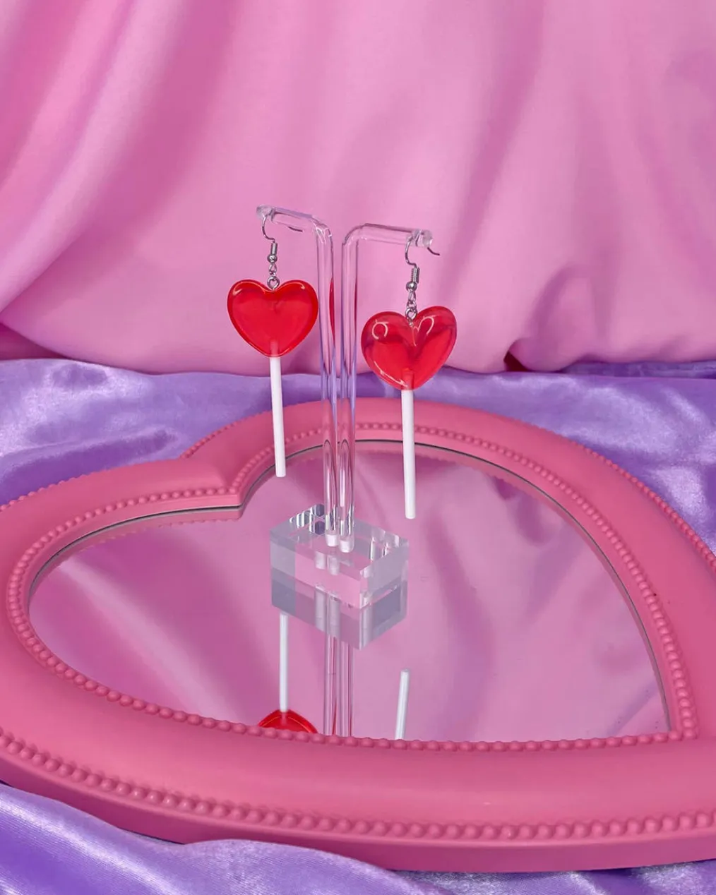 Who wouldn’t want cute heart shaped lollipops dangling from their ears?