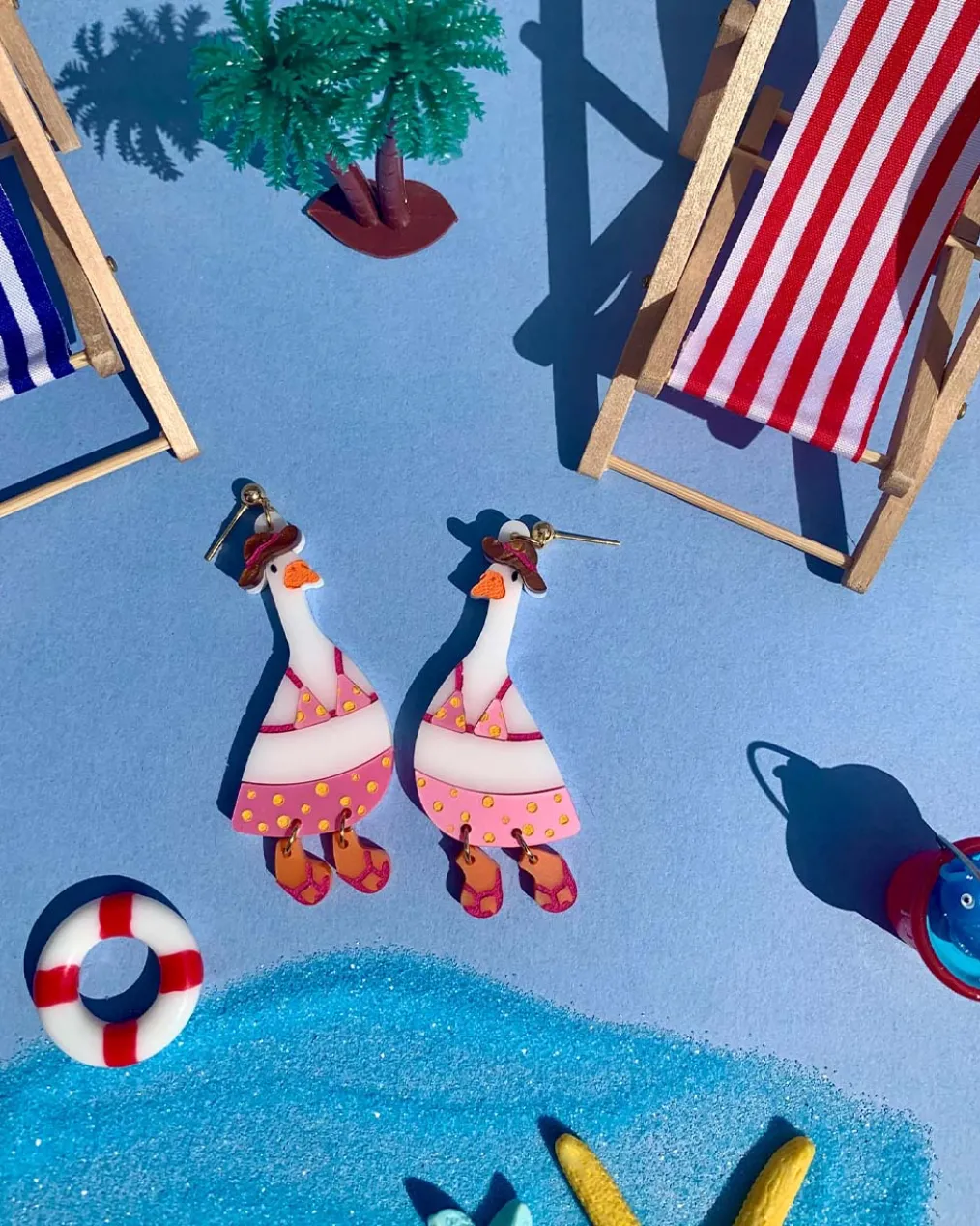 - These handmade acrylic earrings are lightweight and finished with gold plated stainless steel ball posts, making them hypoallergenic and safe for most ears.