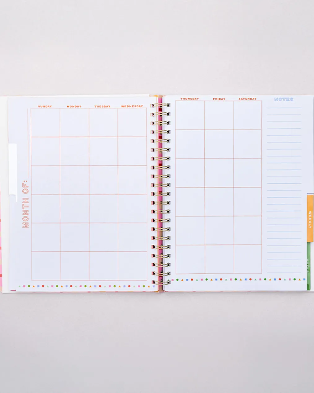 You choose when you want to start (and stop) planning with this planner. The undated monthly and weekly pages let you jump in whenever it works for you. Need space for extra thoughts or to-dos? There are plenty of note pages, too. It’s a great pick for flexible planners who like to do things their own way.