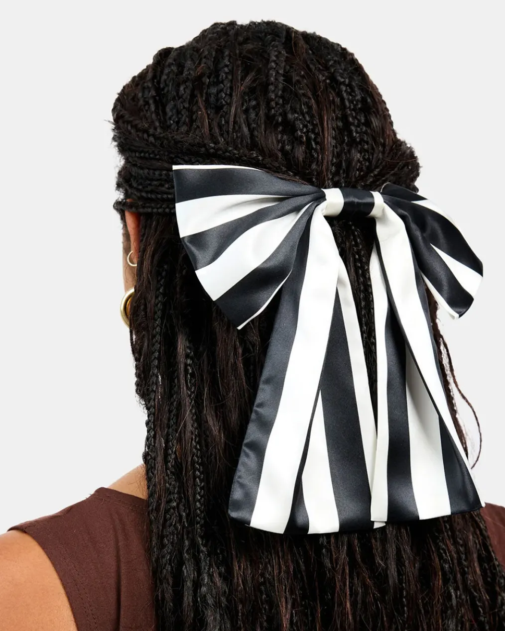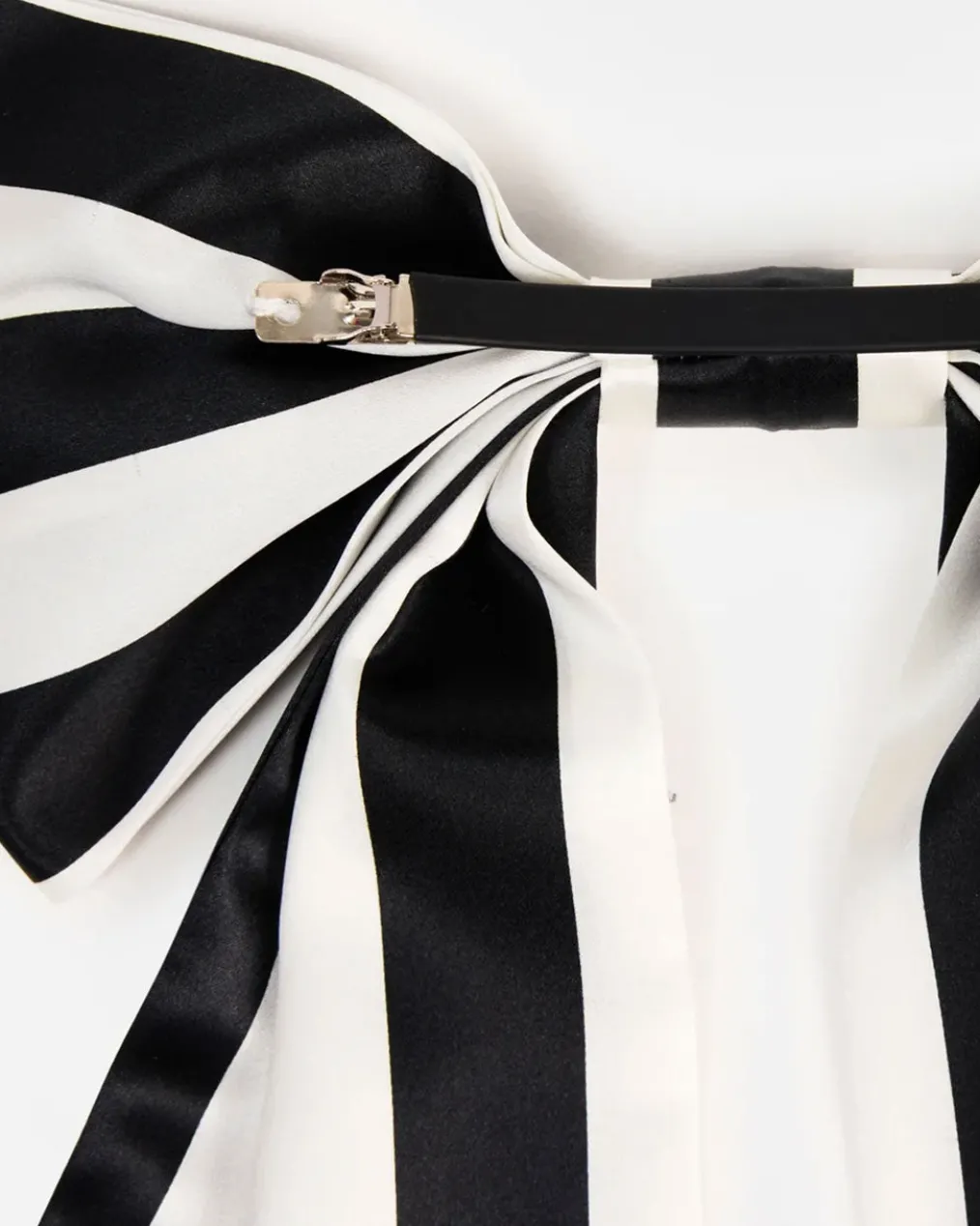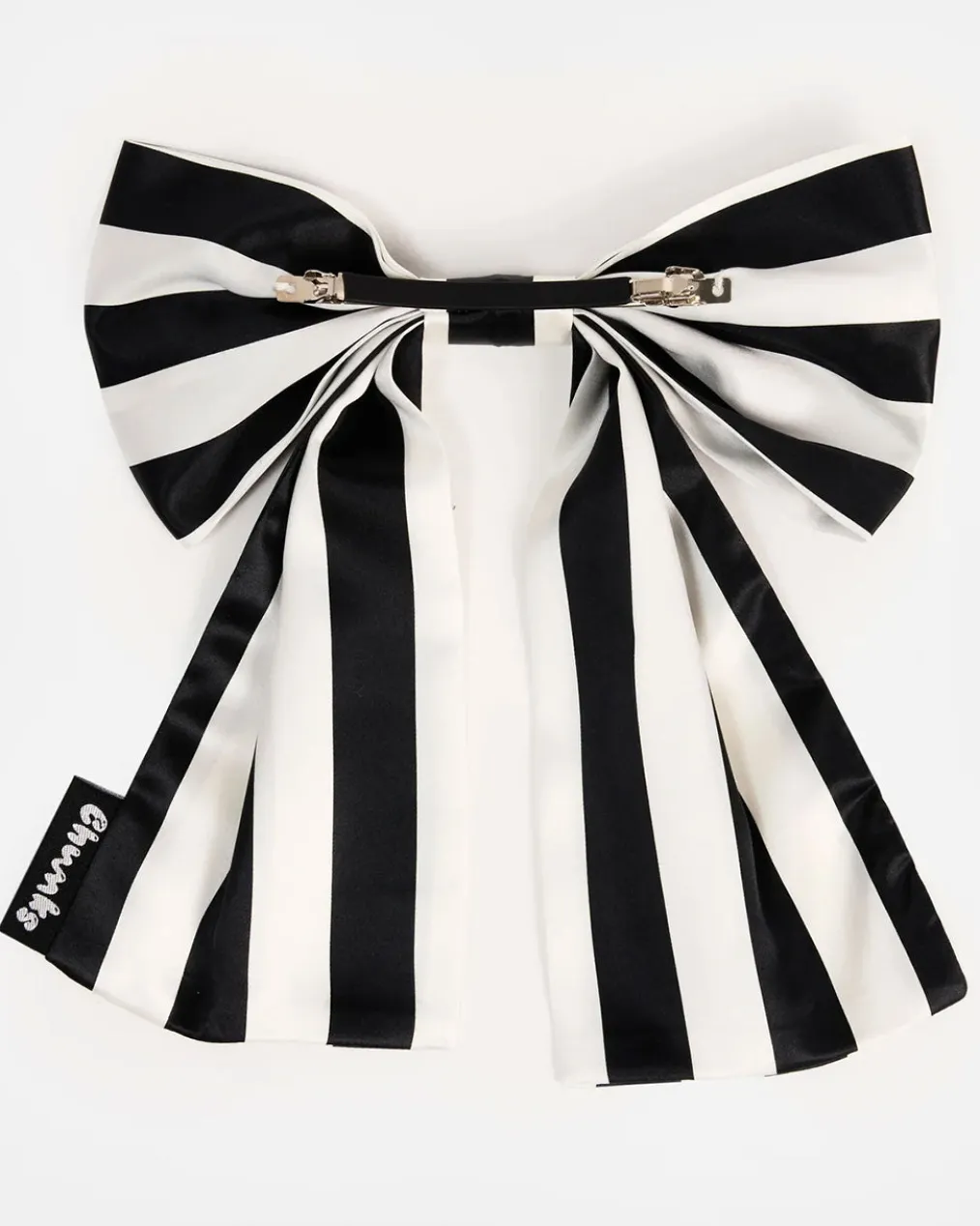 Made from 100% mulberry silk, this large bow barrette features a french barrette clip. Perfect for all hair types and textures.