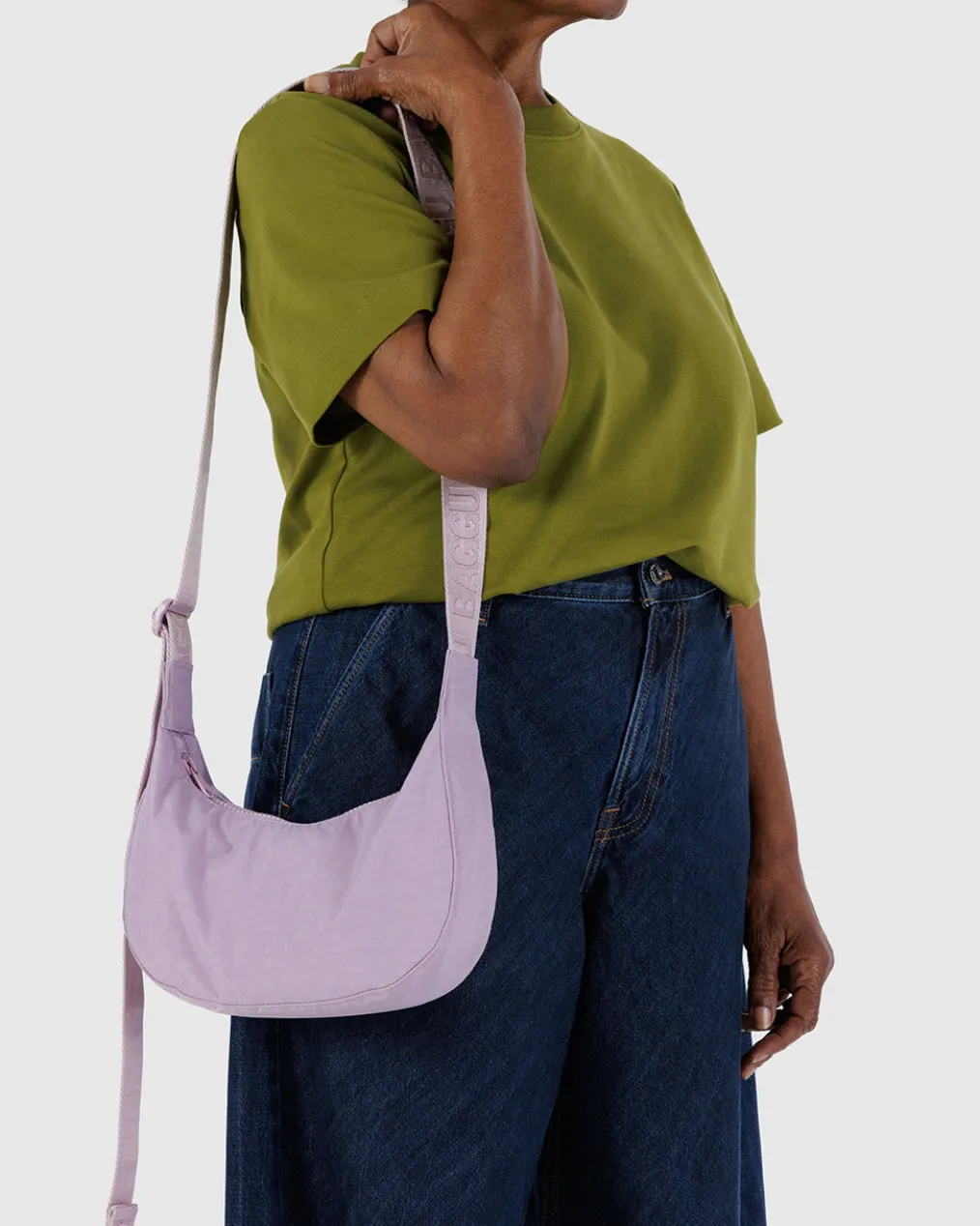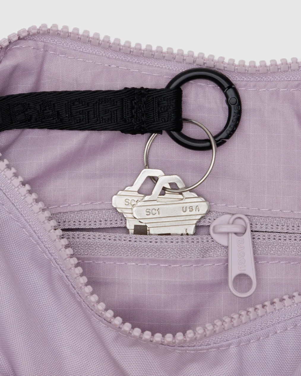 Small Nylon Crescent Bag w/ Key Leash – Dusty Pink