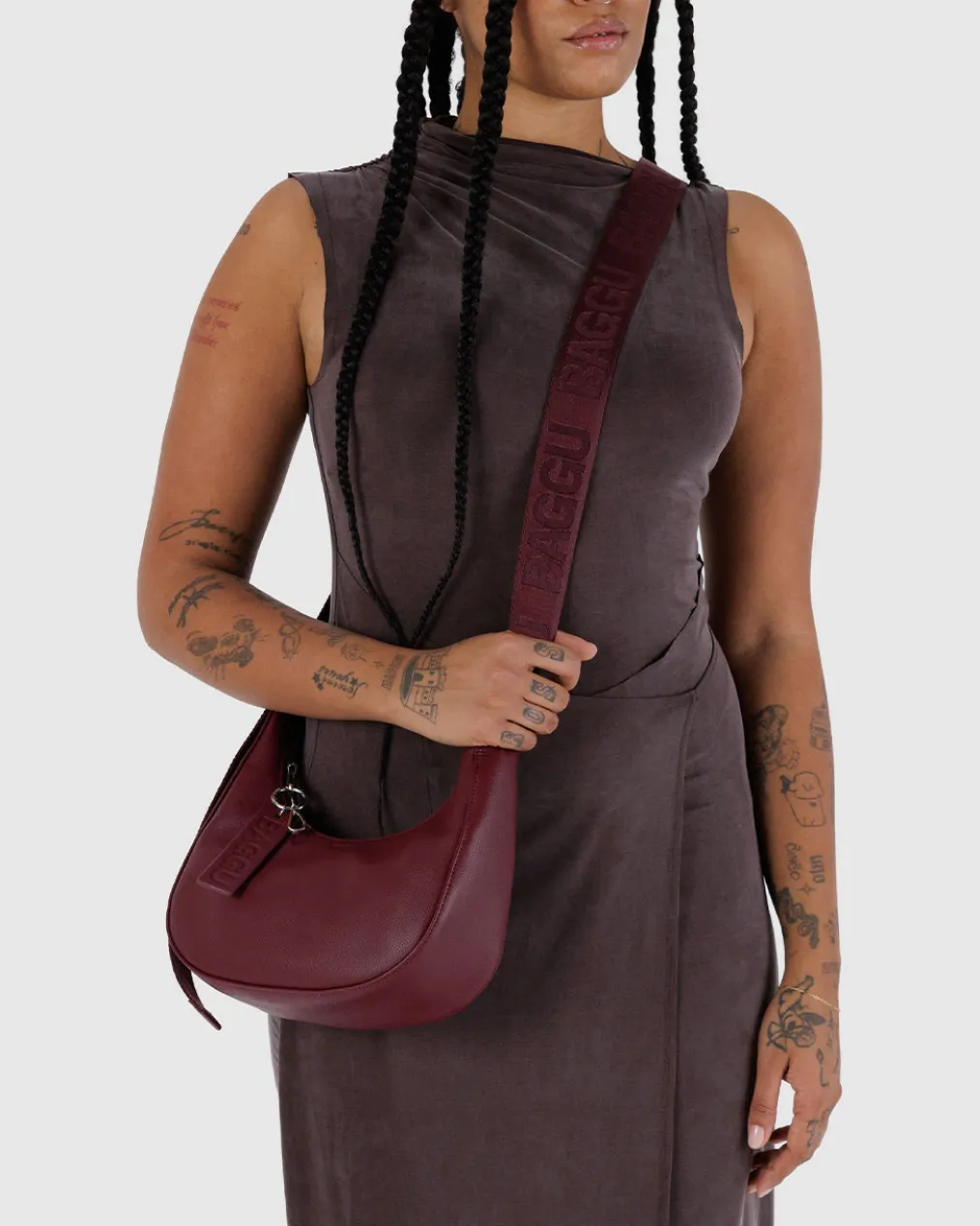 The most premium expression of Baggu’s popular crescent shape. Crafted with simple, elegant lines and recycled leather that’s been fine-tuned for quality, style, and impact. The material upholds their durability and responsible sourcing standards alongside truly elevated details, like a signature grain, custom hardware, and recycled trims.