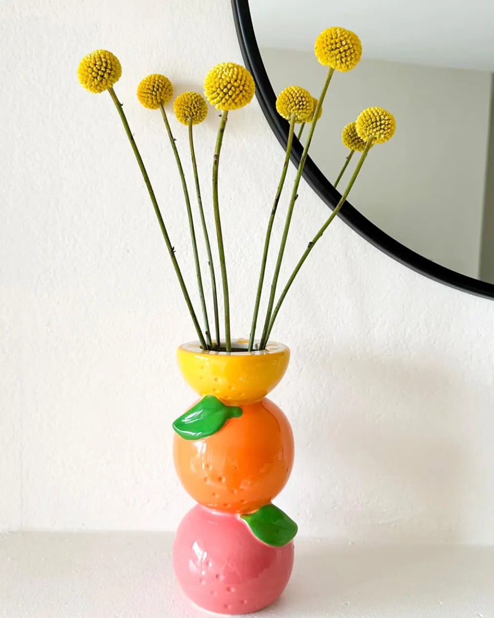 Get your daily dose of vitamin C and cuteness from this vase! It’s hand-painted ceramic, and it has a wide opening that easily holds flowers, office supplies, or kitchen utensils.