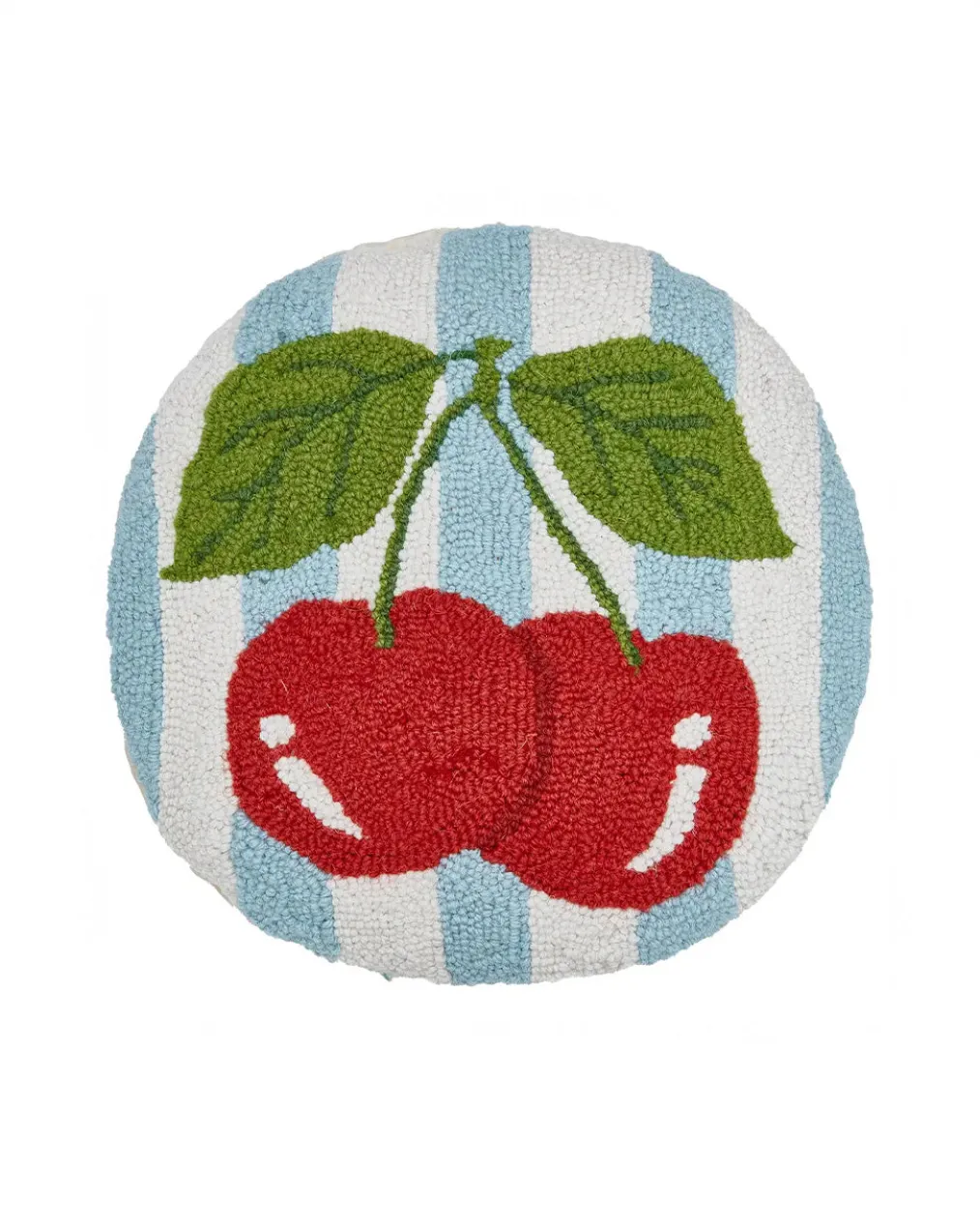 Stripes, cherries, and a pop of color! This adorable latch hook pillow has all the makings of your new favorite home decor accessory! Throw on your bed for a sweet summery addition or on your couch for a pop of color. The circle style is fun and unique!