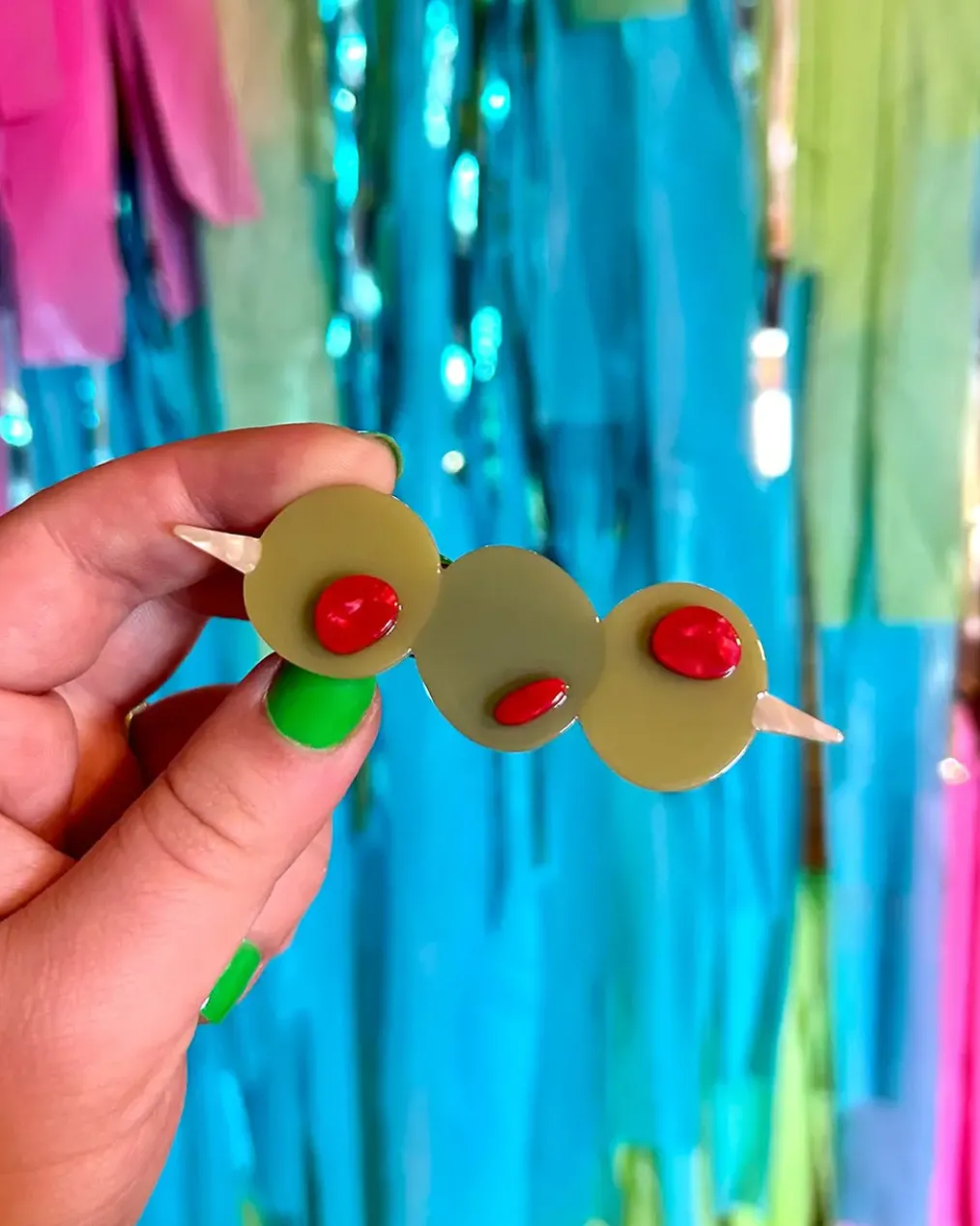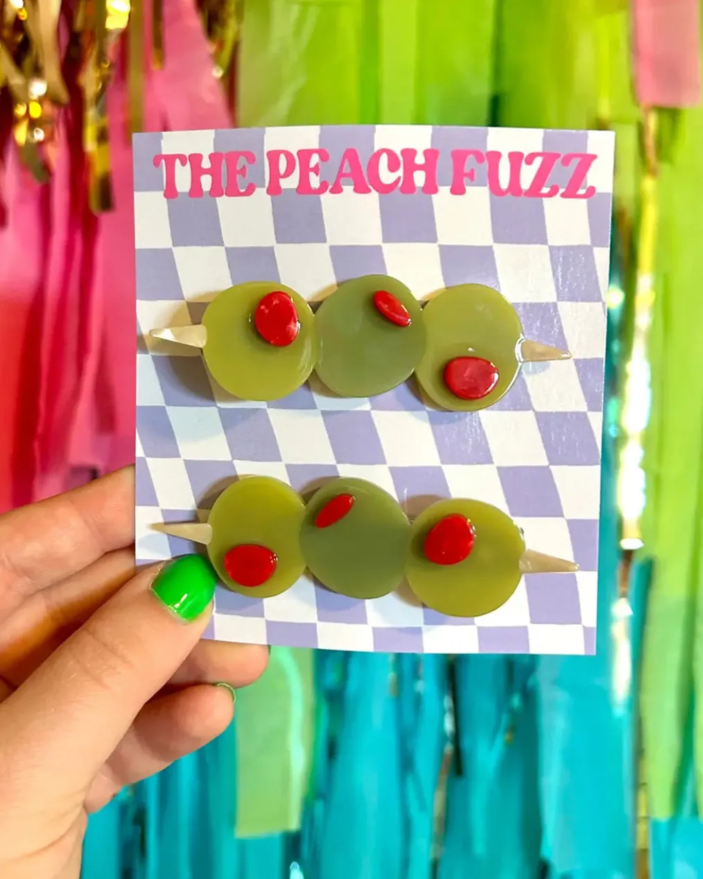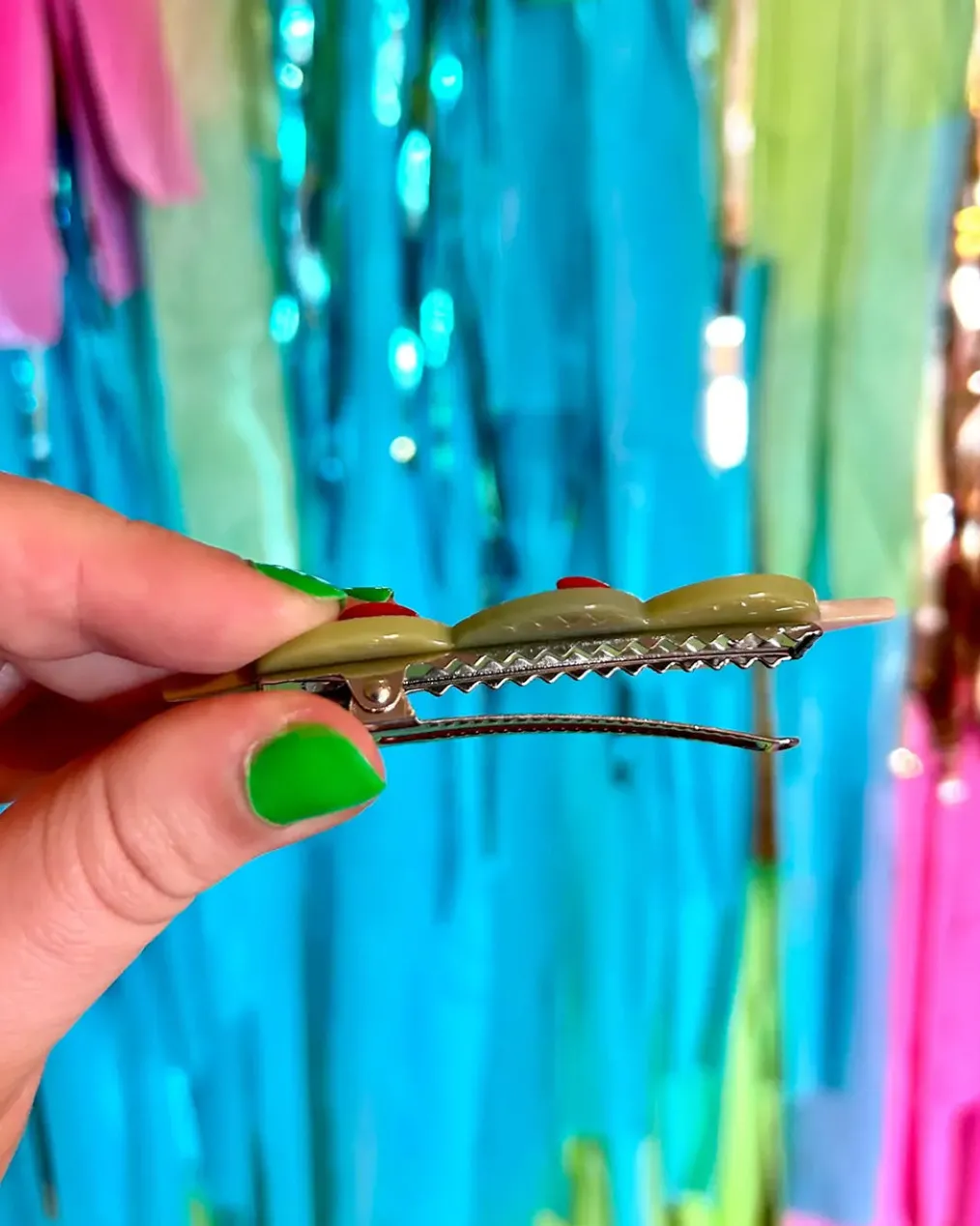 Accessorize in the most delicious way possible with this olive trio hair clip set! Adorn your ‘do with this unique and fun set of alligator clips. Make olive your accessory dreams come true and get ready for compliments!