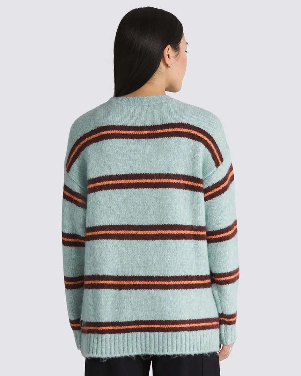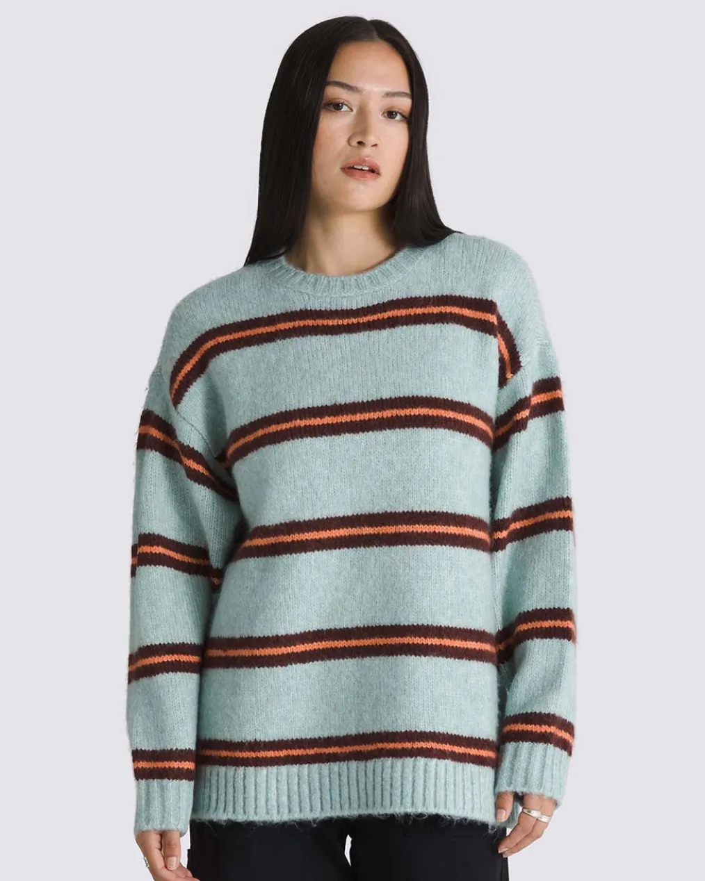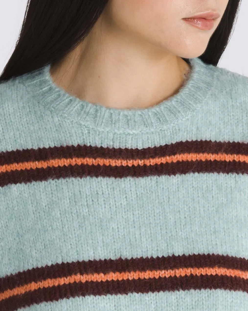 The Suzie Stripe Crew Sweater is a crew neck pullover sweater made with a comfortable acrylic blend, ribbed hem and cuffs, and a bold striped pattern.