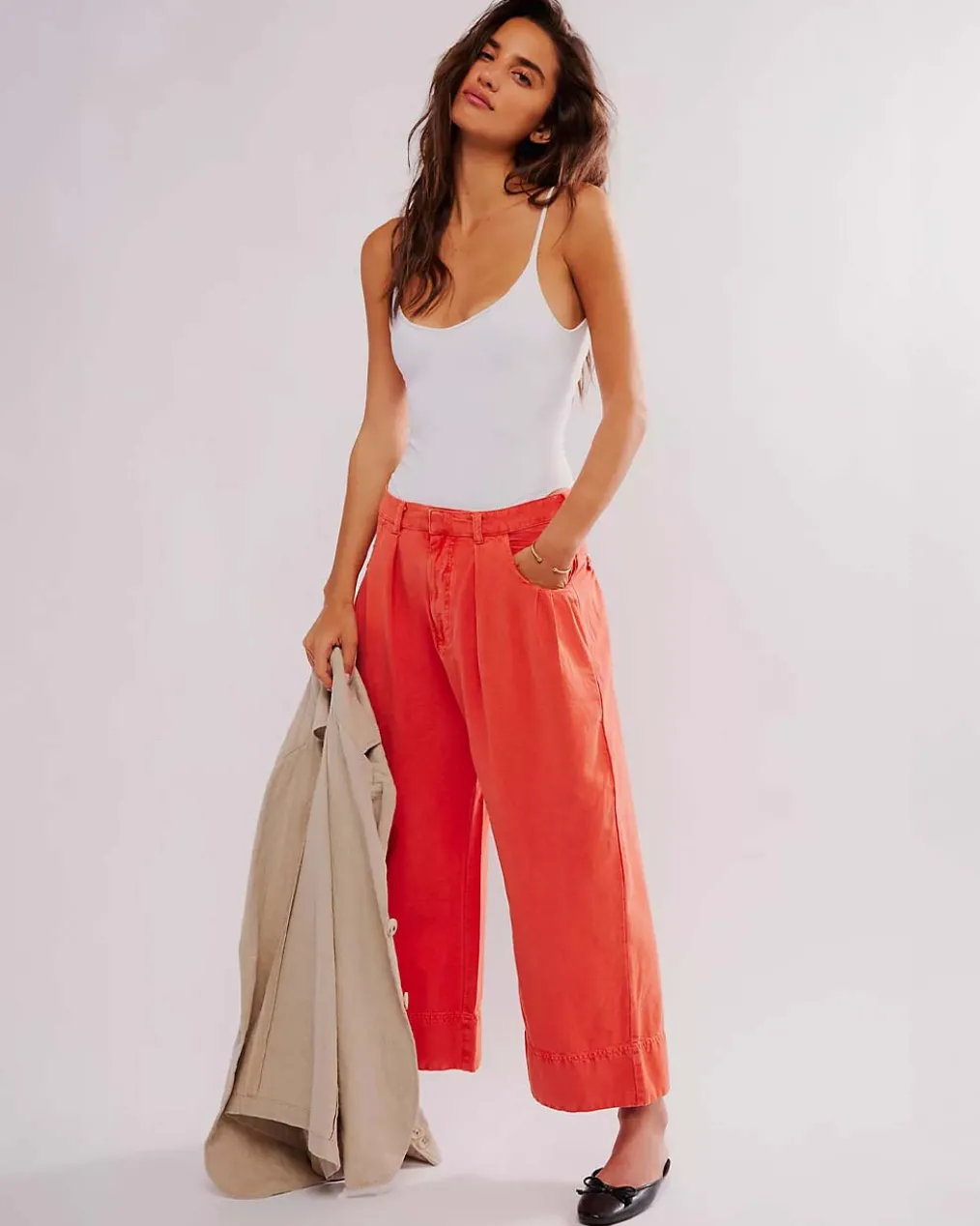 - Fit:Mid-rise, cropped wide-leg style