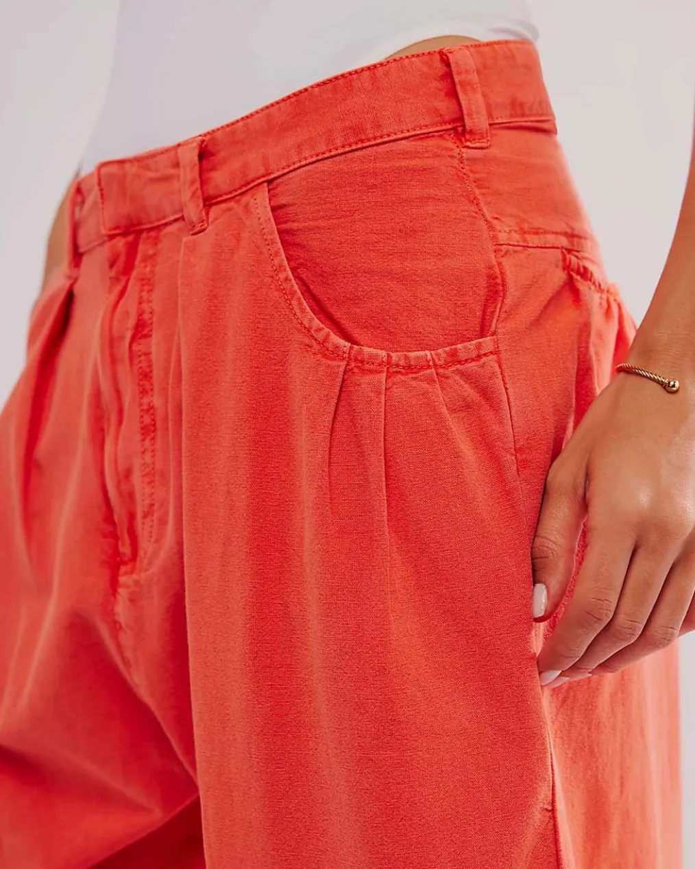 - Features:Cotton-linen blend, menswear-inspired tailored fit with pleated detailing, 4-pocket styling, zip-fly, belt loops at waistband