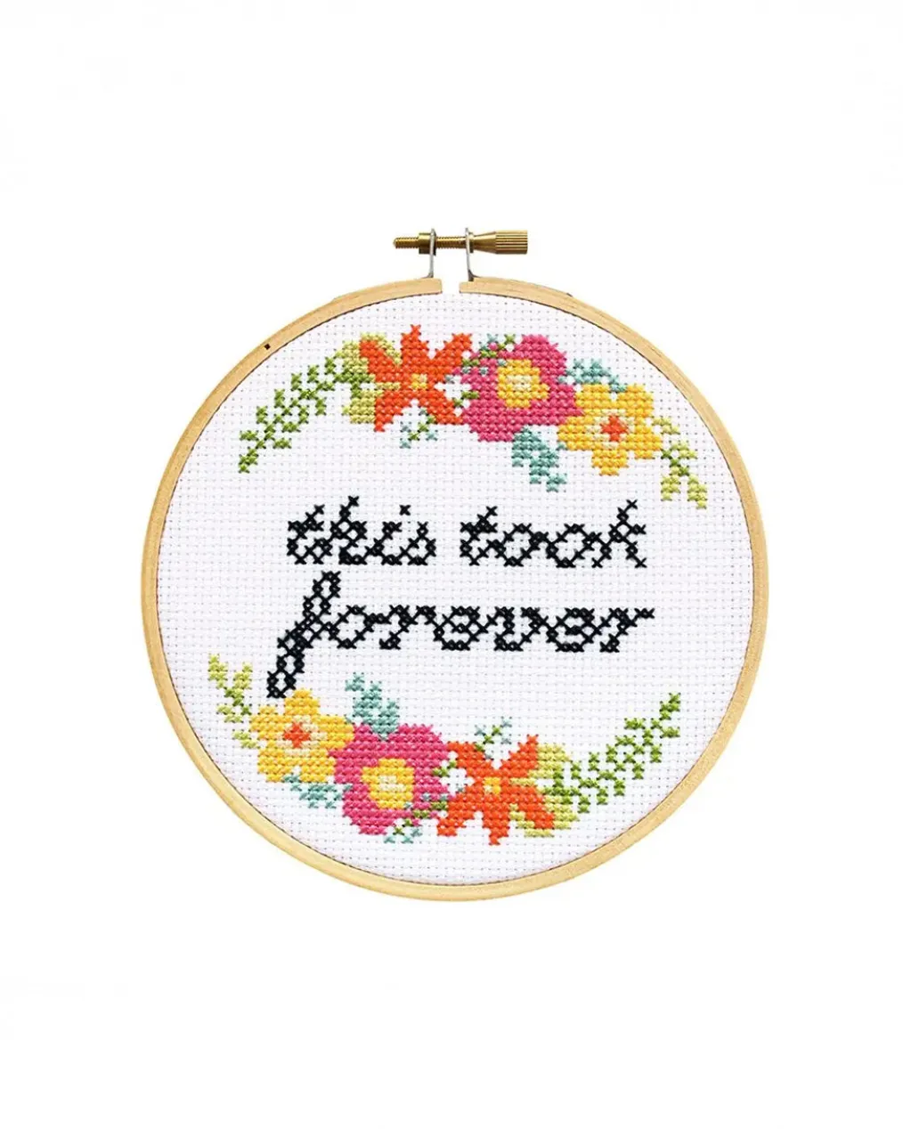 Cross stitching is a slow and meticulous process, but the finished product is absolutely worth the wait. Revel in your hard work with the This Took Forever DIY cross stitch kit. Kit includes everything you need to stitch up your own cross stitch, with step-by-step instructions for those new to stitching.
