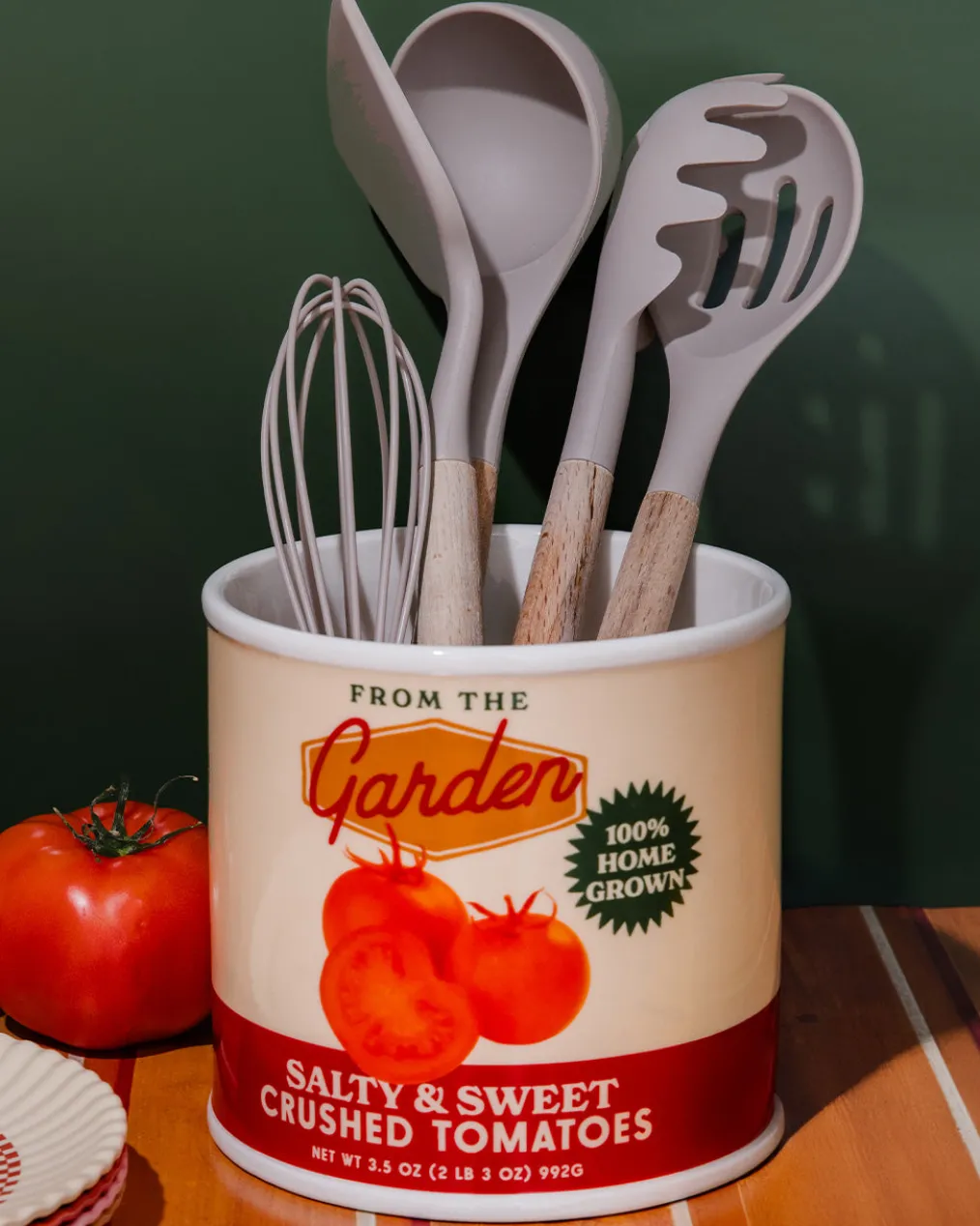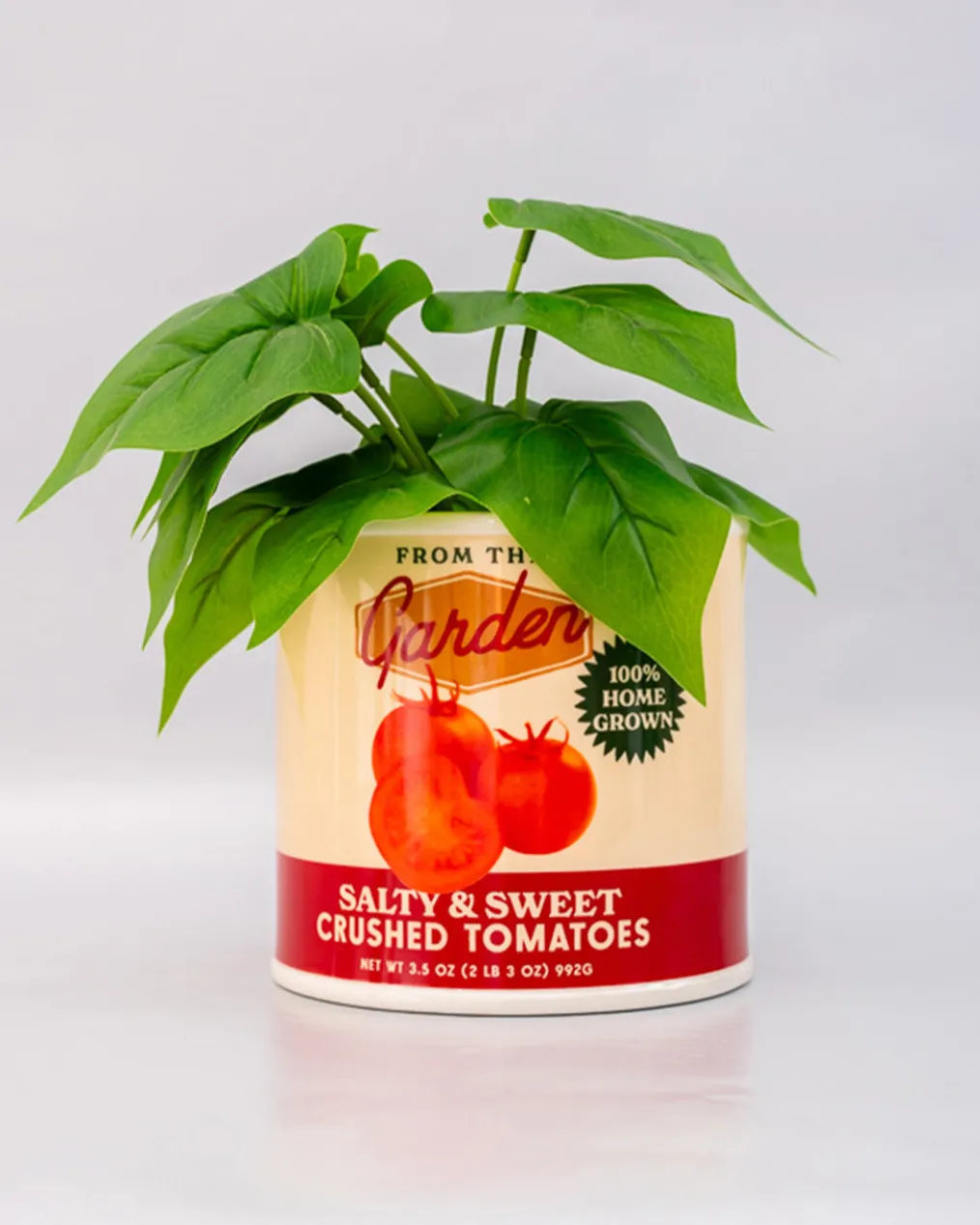 Ah, yes, we’ll just help ourselves to this can of tomatoes — wait a second! That’s a vase! And it’s going to look so good on your kitchen table with a little bouquet inside.