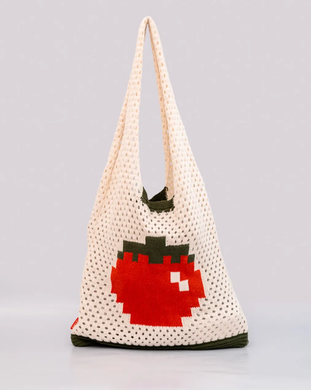Fruits and vegetables everywhere will flock to you. This crocheted produce bag is made of cotton and has a cool digital pixel design.