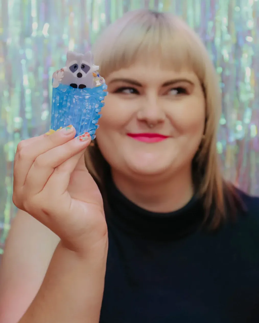 I’M THE TRASH MAN! And every trash man deserves their own trash panda. This raccoon inspired hair claw comes complete with a little guy in his cozy trash can and all his favorite scraps.