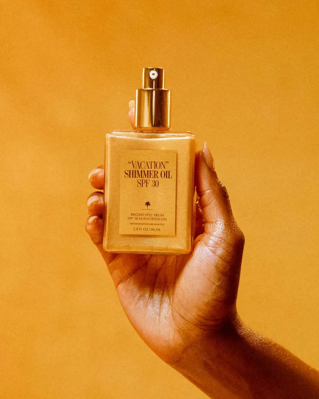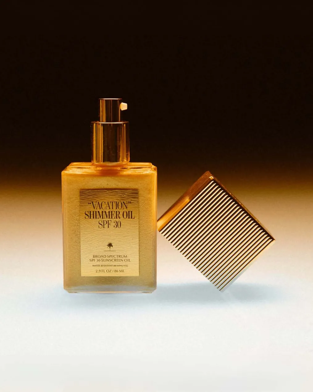 The crown jewel in the Vacation® Sunscreen family, Shimmer Oil features two types of illuminating gold mica shimmer combined with Vacation’s award-winning signature scent, SPF 30 protection and luscious natural oils to deliver “show stopping” radiance that will turn any poolside moment into a dazzling red carpet event.