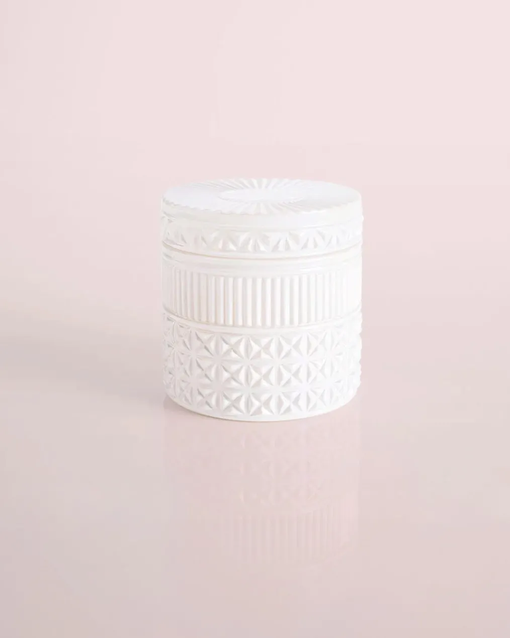 The White Opal Gilded Faceted Jar is the perfect match to any space with its iridescent, detailed finish and the iconicVolcanofragrance of tropical fruits and sugared citrus.