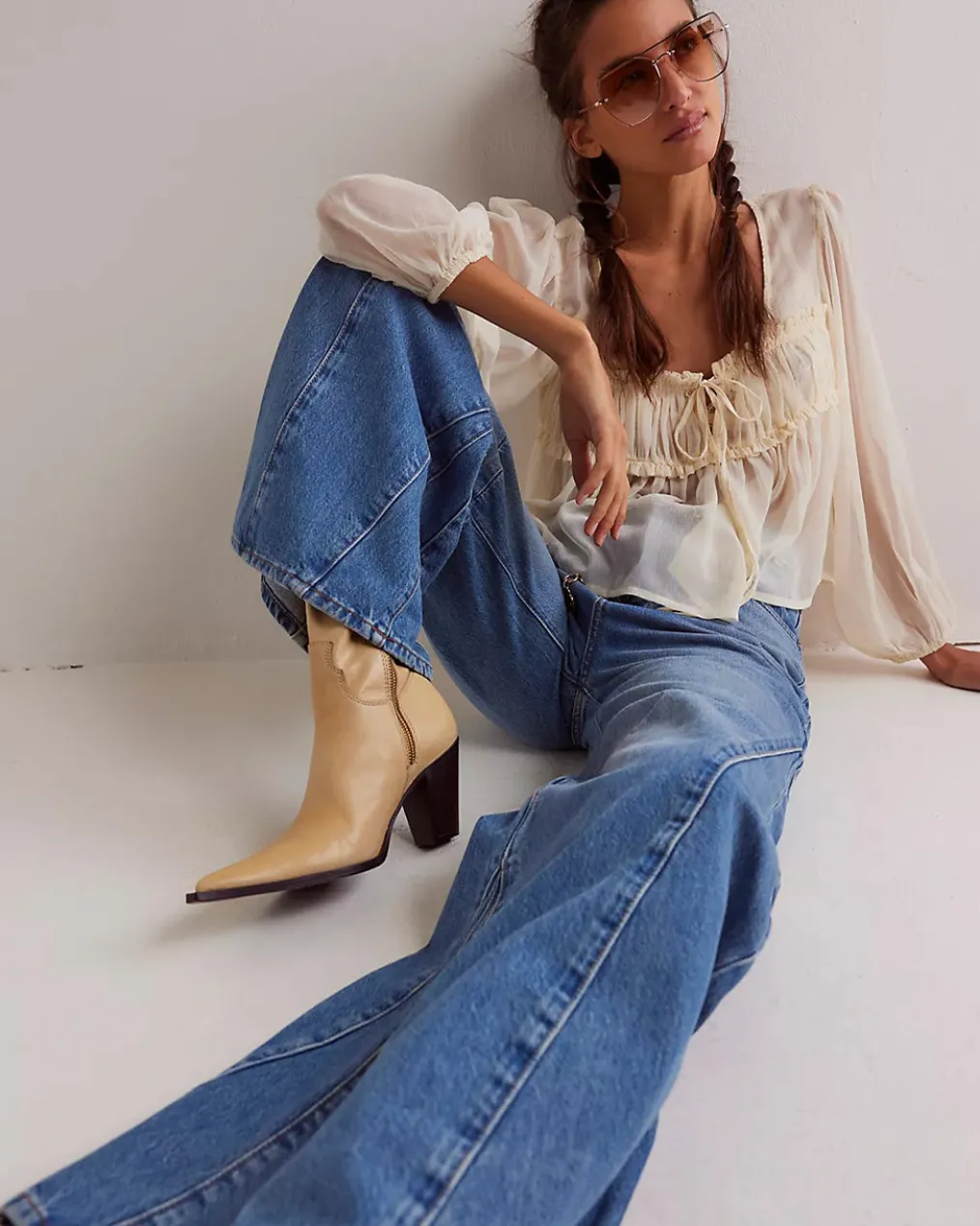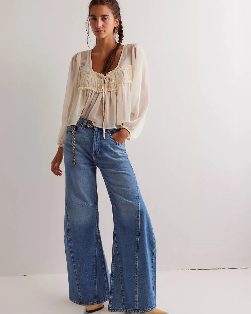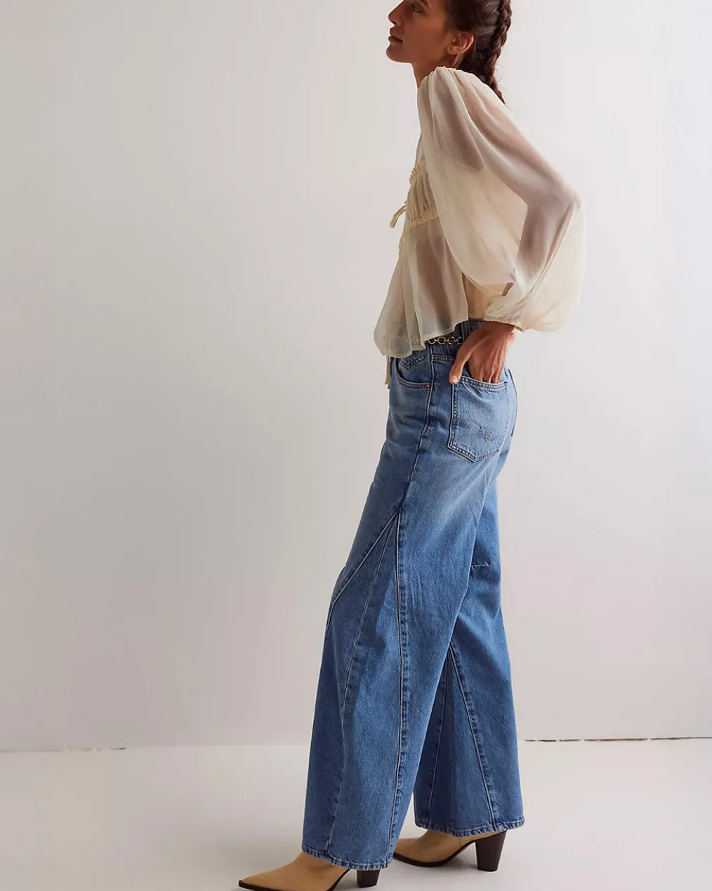 - Fit:High-rise, slouchy flare silhouette