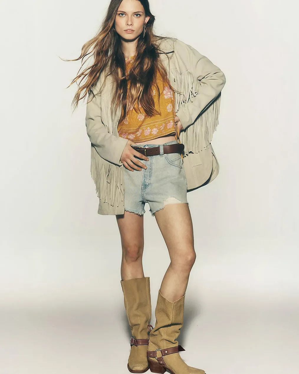 - Zip fly and button closure, five-pocket design, distressing & fraying throughout, soft rigid denim