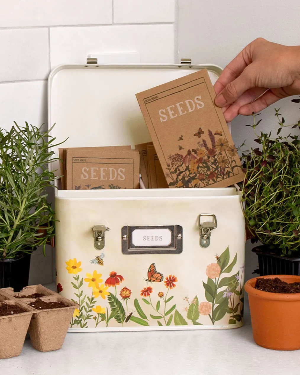 Discover the perfect storage solution for your seeds with the Wildflower Botanicals Seed Storage Box. Crafted for organization and charm, this box is designed to keep your seeds safe and easily accessible. Ideal for gardeners and gardening enthusiasts, this tin storage box makes the perfect gift!