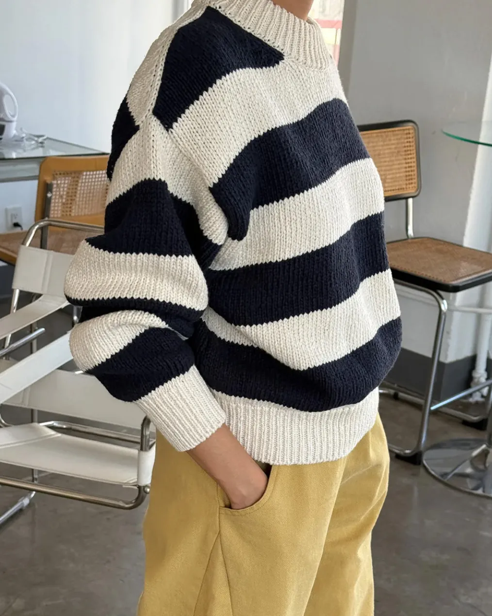 The Zoe Cotton Sweater – a timeless piece that transcends seasons. Made of mid-weight cotton and high gauge knit, it boasts a mock neck with slouchy shoulders and balloon sleeves for a relaxed fit. Ribbed trim adds a classic touch to the neck, cuffs, and hem. Layer the sweater over a cami during cooler moments, or on its own for an airy, elevated yet look.