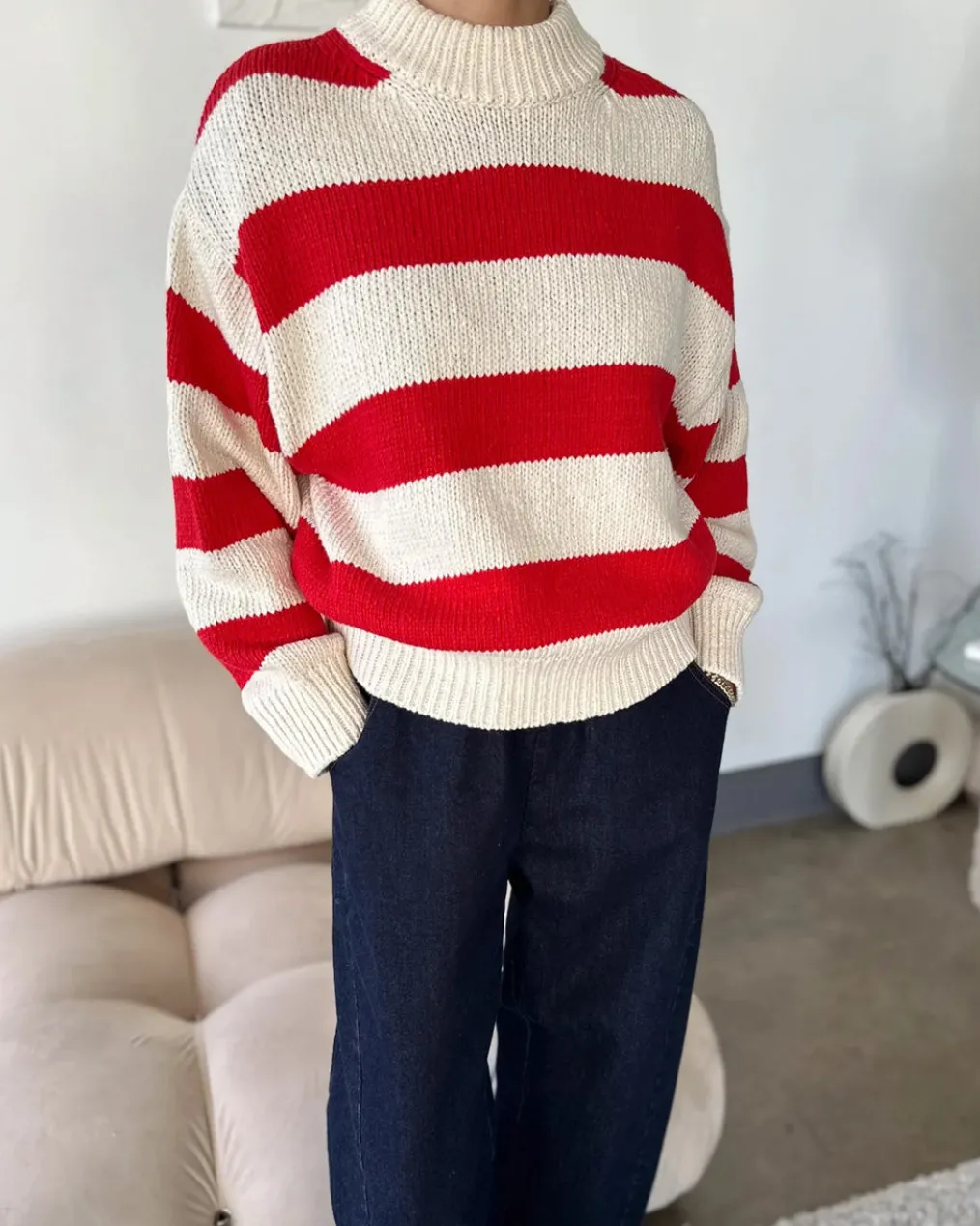 The Zoe Cotton Sweater – a timeless piece that transcends seasons. Made of mid-weight cotton and high gauge knit, it boasts a mock neck with slouchy shoulders and balloon sleeves for a relaxed fit. Ribbed trim adds a classic touch to the neck, cuffs, and hem. Layer the sweater over a cami during cooler moments, or on its own for an airy, elevated yet look.