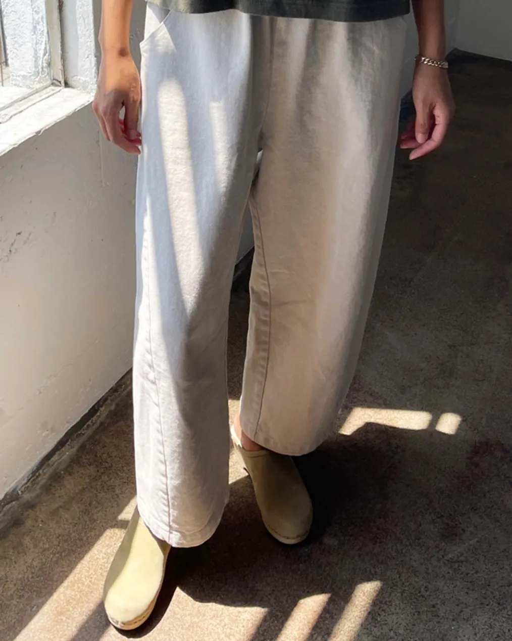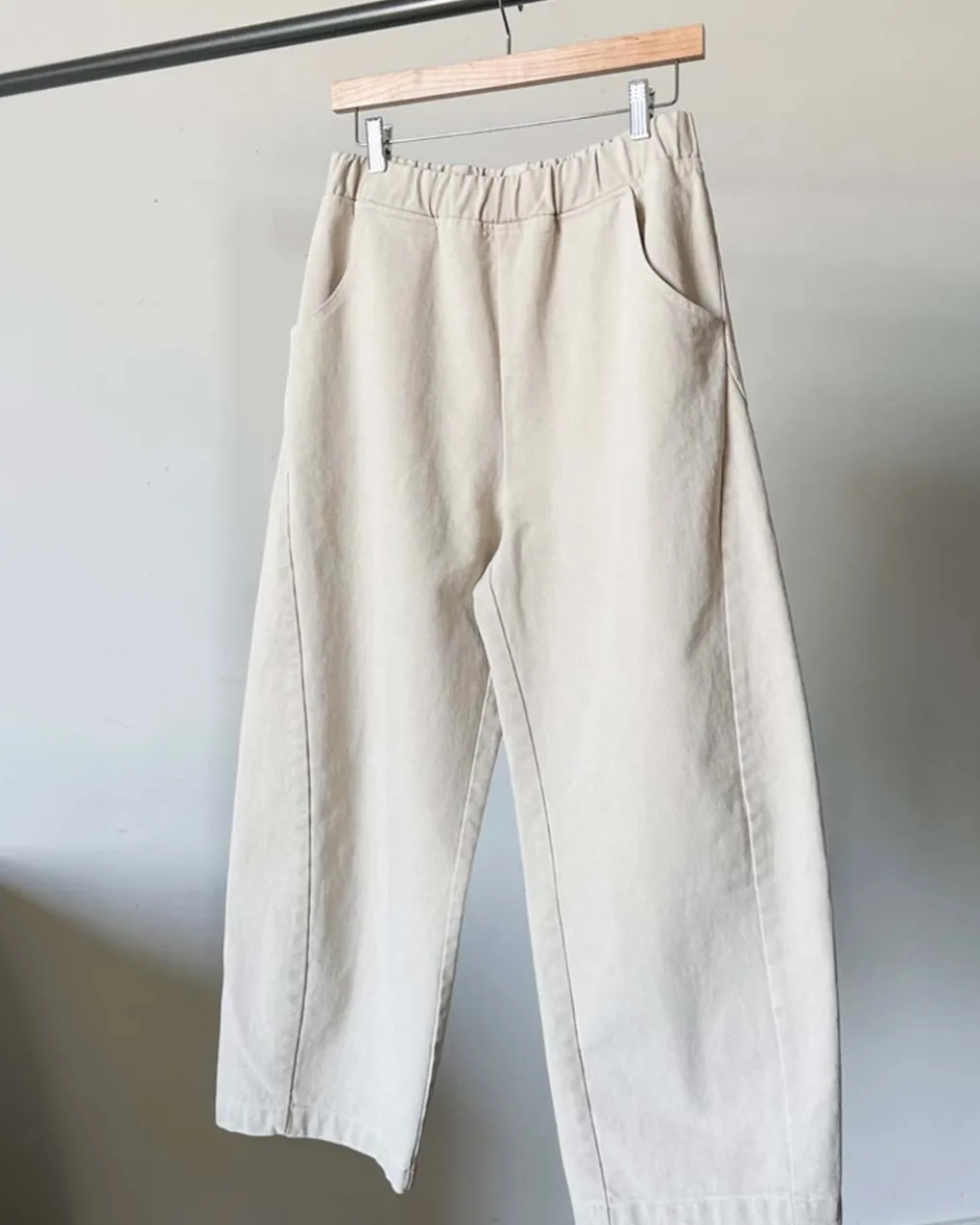 These are the pants we love to live in! They have thoughtful design details like an elastic high waist that gives you a room to breathe, slightly curved leg shape, cropped length to show off your favorite socks and shoes, unique side panels and deep pockets. The heavy-weight canvas material adds durability and gives them a structured look. They’re the perfect everyday pants, made easy to style.
