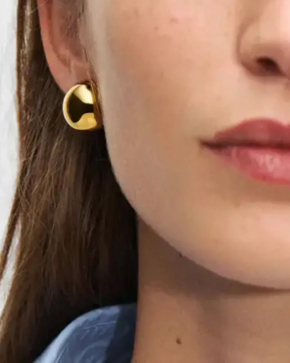 Ball stud got megawatt-ed a wardrobe favorite. Sits flat and comfortable on the lobe. Has a Huggie fit to drop off the load just enough to complete to puffy look.