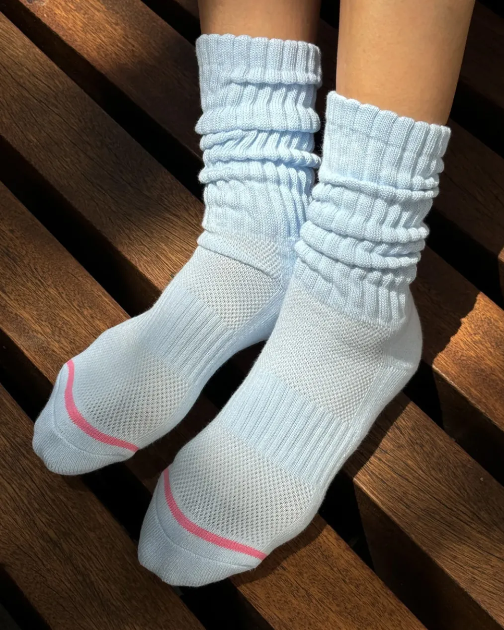 Put your best foot forward in the Ballet Socks. A thicker, ribbed leg adds bubbly texture while still maintaining support. The feel and design of the foot remain close to the Boyfriend Socks, featuring arch support and breathable mesh along the top. Perfect for dancing, scrunching, lounging, and everything in between.