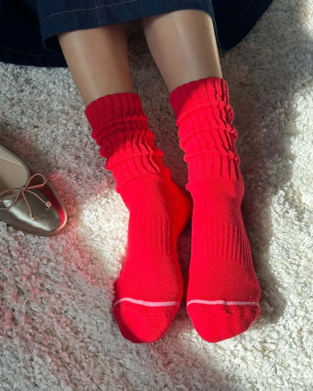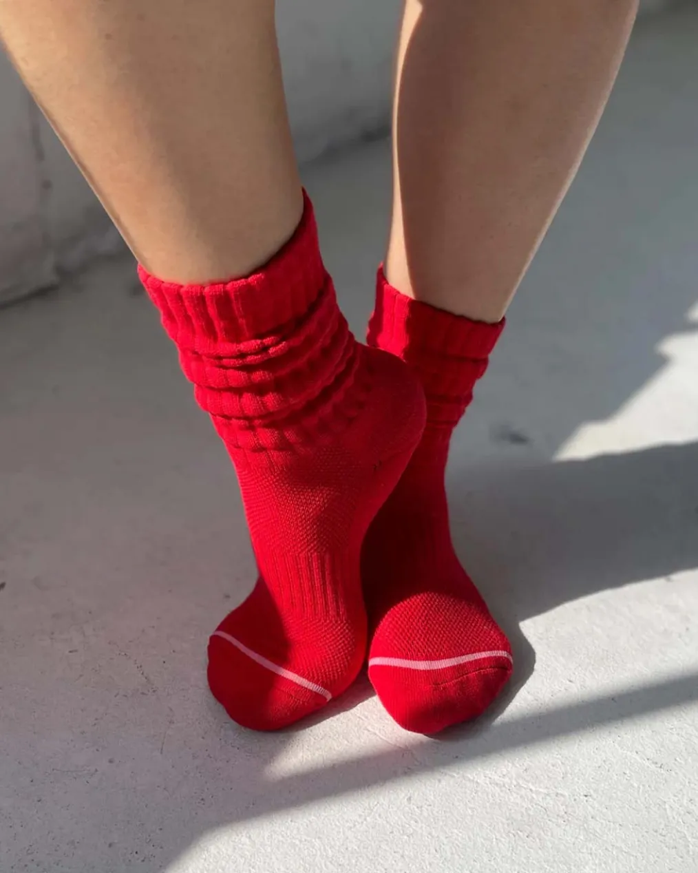 Put your best foot forward in the Ballet Socks. A thicker, ribbed leg adds bubbly texture while still maintaining support. The feel and design of the foot remain close to the Boyfriend Socks, featuring arch support and breathable mesh along the top. Perfect for dancing, scrunching, lounging, and everything in between.