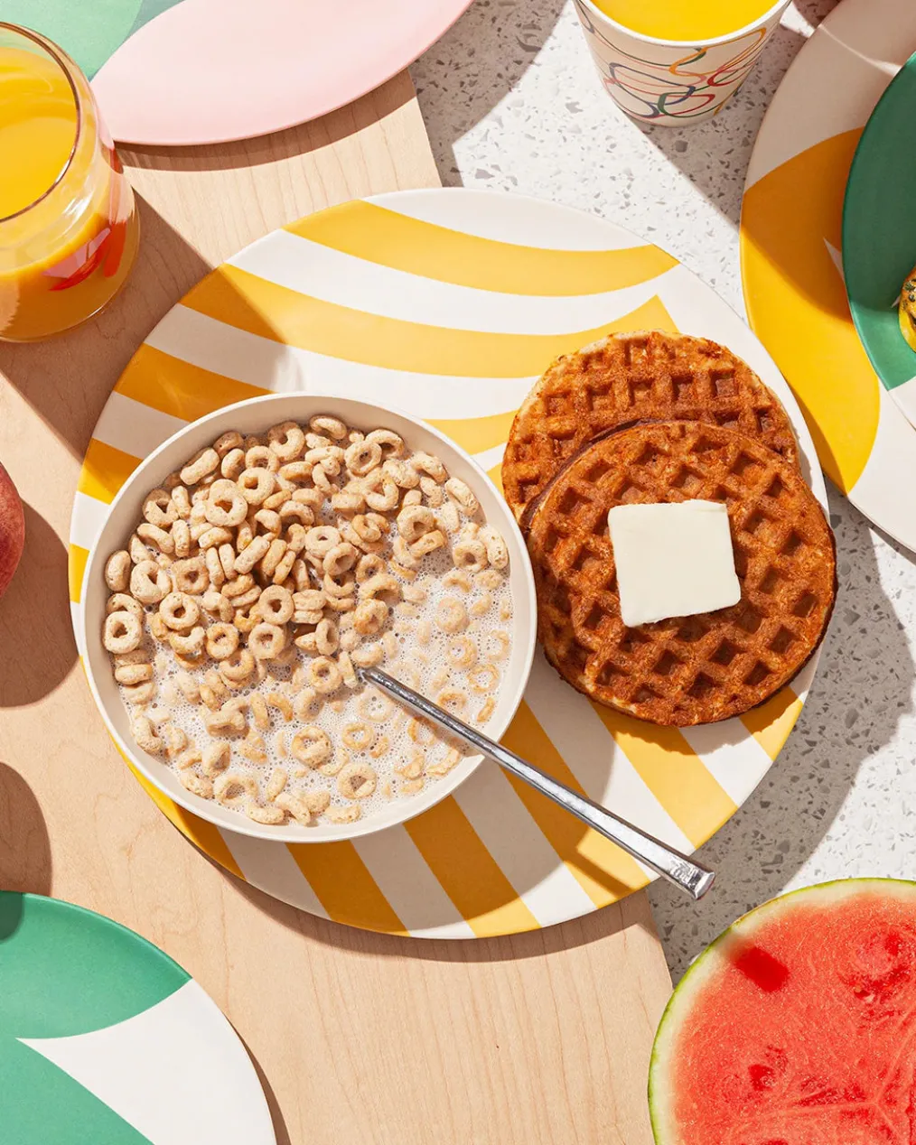 - Made from bamboo fiber cornstarch and printed with food-grade ink