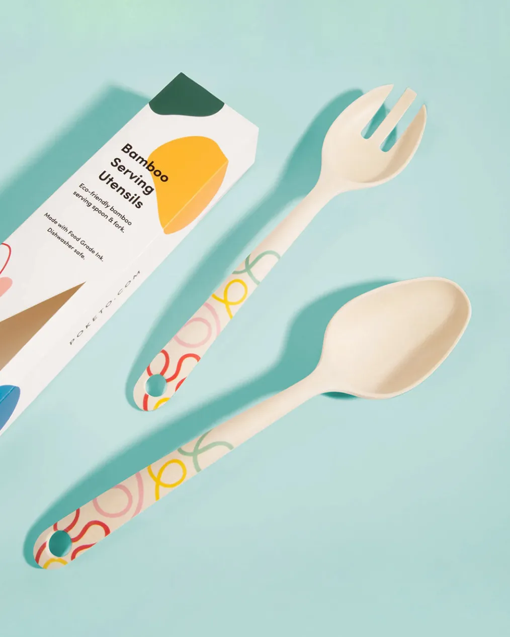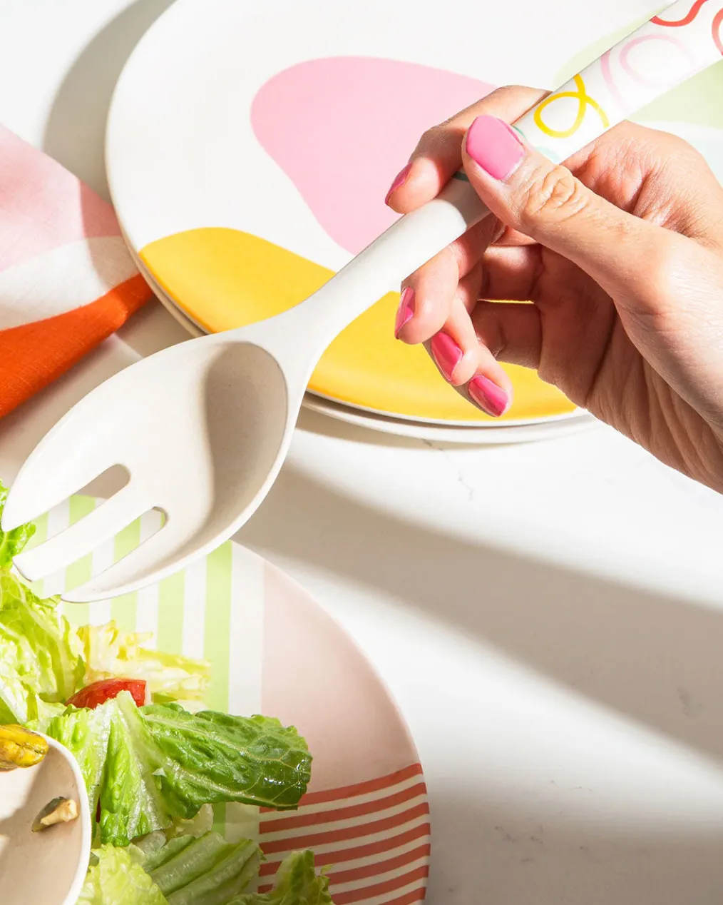 Entertain and serve in style without having to use single-serve plastic. The colorful squiggly pattern goes perfectly with the rest of our bamboo tableware and is sure to collect countless compliments from your guests.