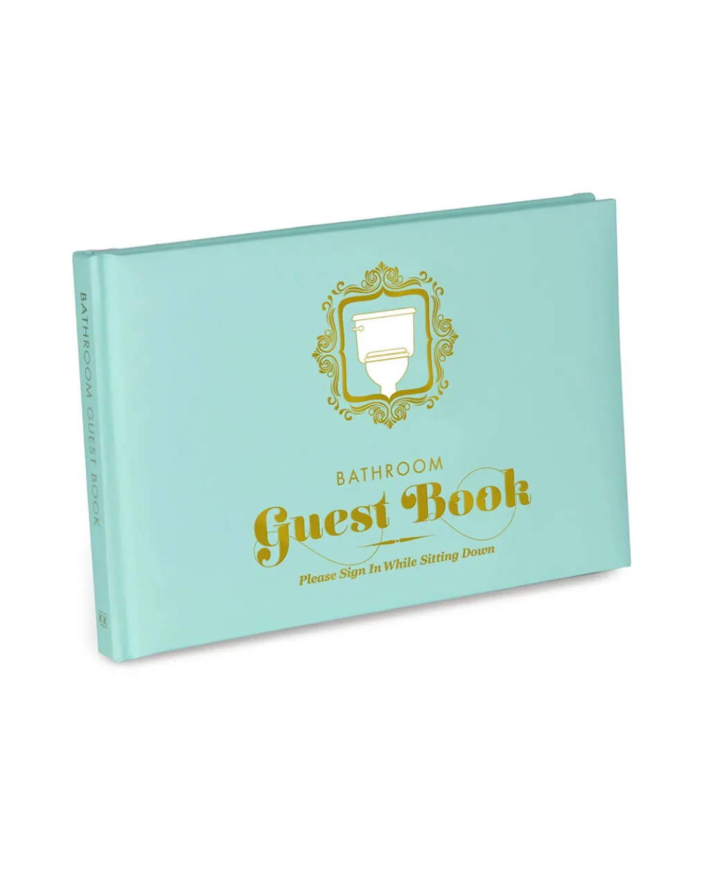 No ordinary guest book, this throne-room tome offers provocative prompts and ample doodle space to help your guests express themselves for posterity. Who hasn’t had a deep thought on the can?