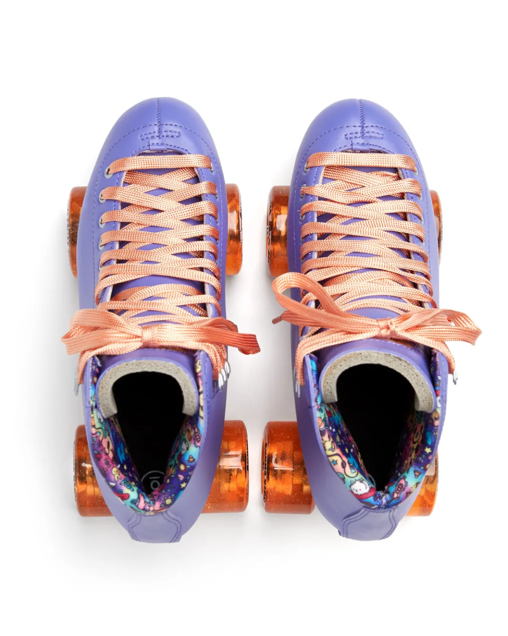 In a world of black skates for boys and white skates for girls (yawn), Moxi Skates exists to bring bright colors and fun to one of our favorite pastimes. And their new Beach Bunny style makes that fun even more accessible! With the prettiest periwinkle color, sparkly peach wheels, removable toe caps, and a pattern inside that gives us serious Lisa Frank vibes, these are a no-brainer.