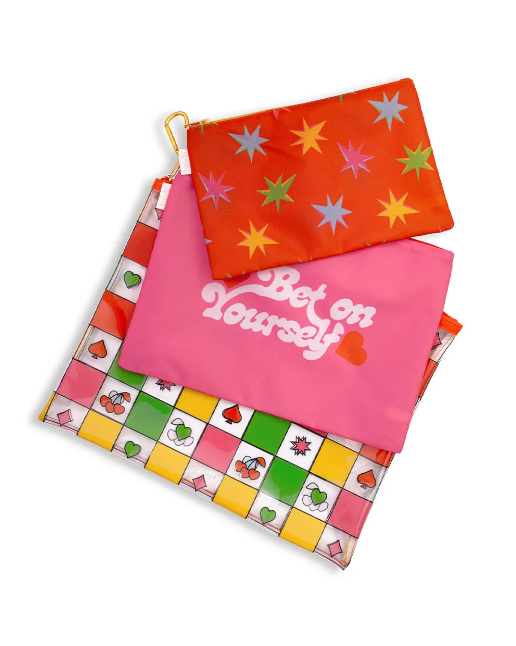 Beach preparedness is no laughing matter. This set includes three pouches (one is water resistant!) that can nest inside one another or be clipped together with the included carabiner.