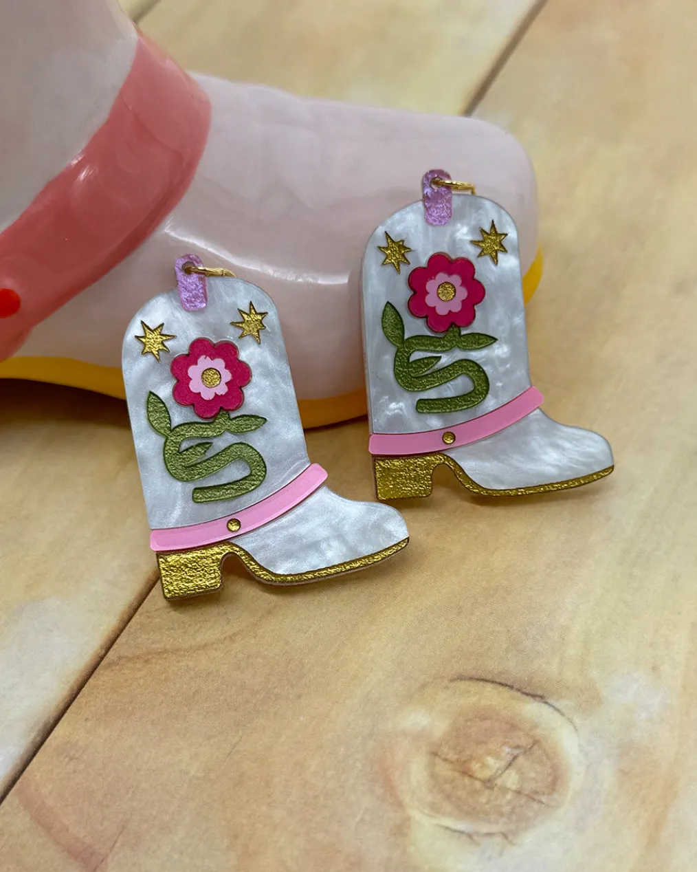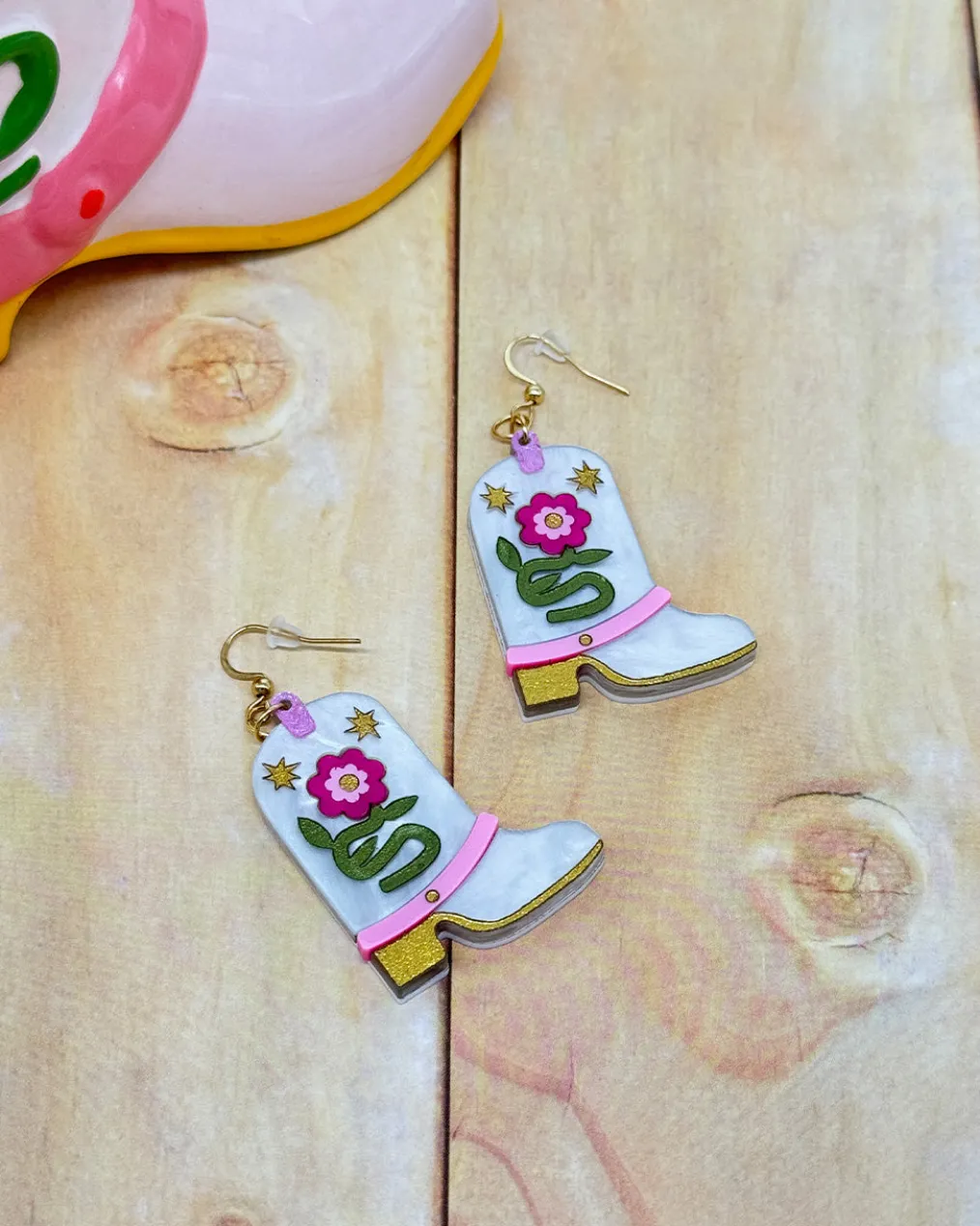 - Handmade acrylic earrings are finished with hypoallergenic 18k gold plated stainless steel hardware.